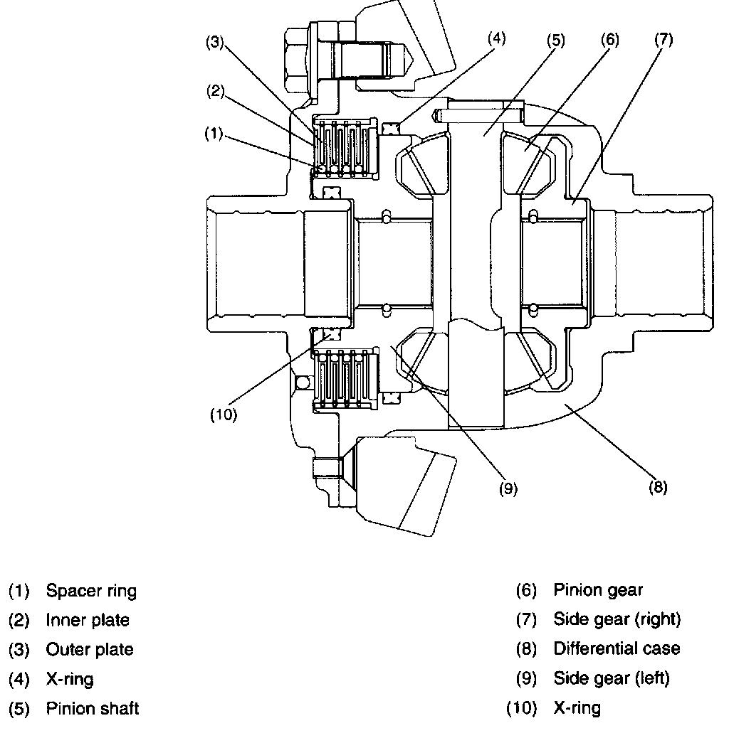 The space between the differential case and the left side gear is filled with a mixture of high viscosity silicone oil and air and hermetically sealed with X-rings.