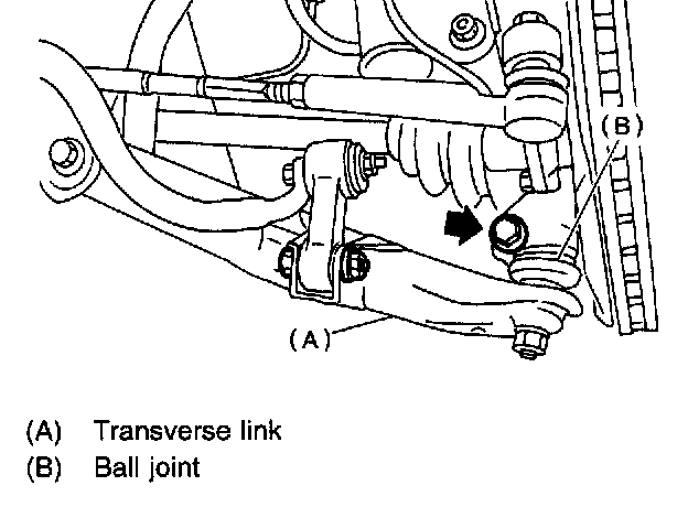 20. Remove bolt securing ball joint of transverse link to housing.