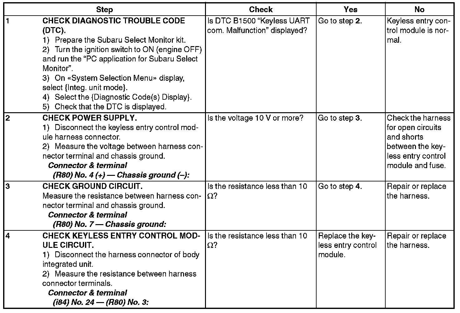 CHECK KEYLESS ENTRY CONTROL MODULE