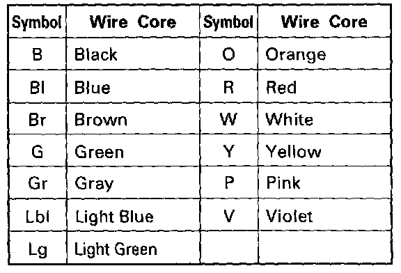 WIRE COLOR SYMBOLS
