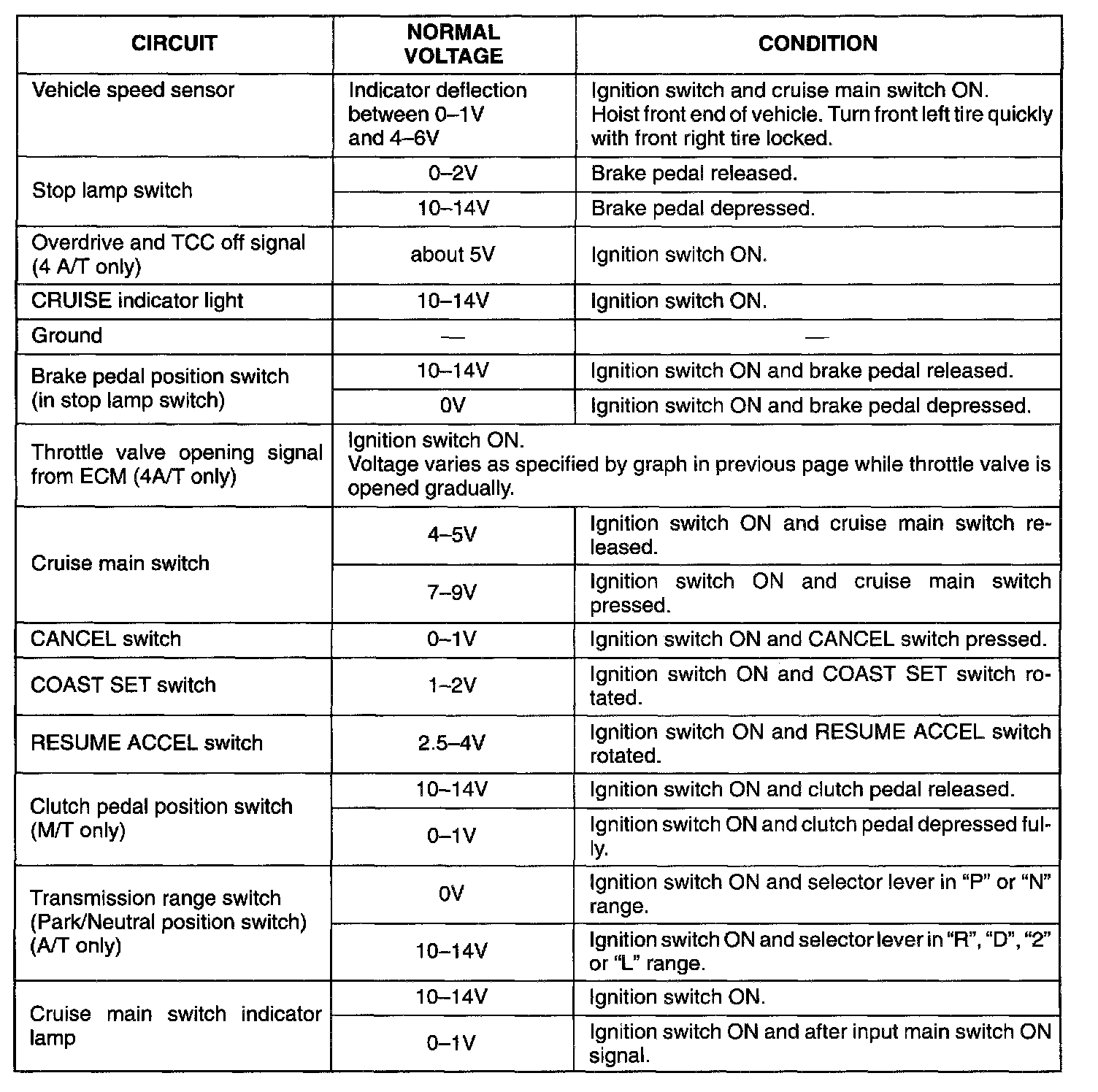 CRUISE CONTROL MODULE AND ITS CIRCUIT INSPECTION
