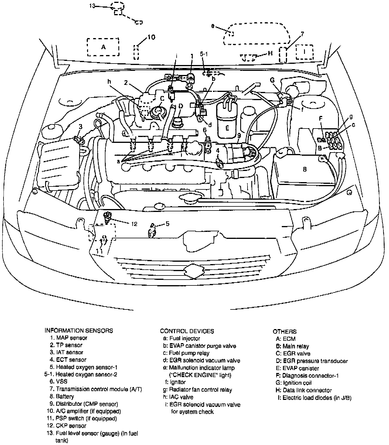Also, with A/T model, ECM sends throttle valve opening signal and coolant temp. signal to transmission control module to control A/T.