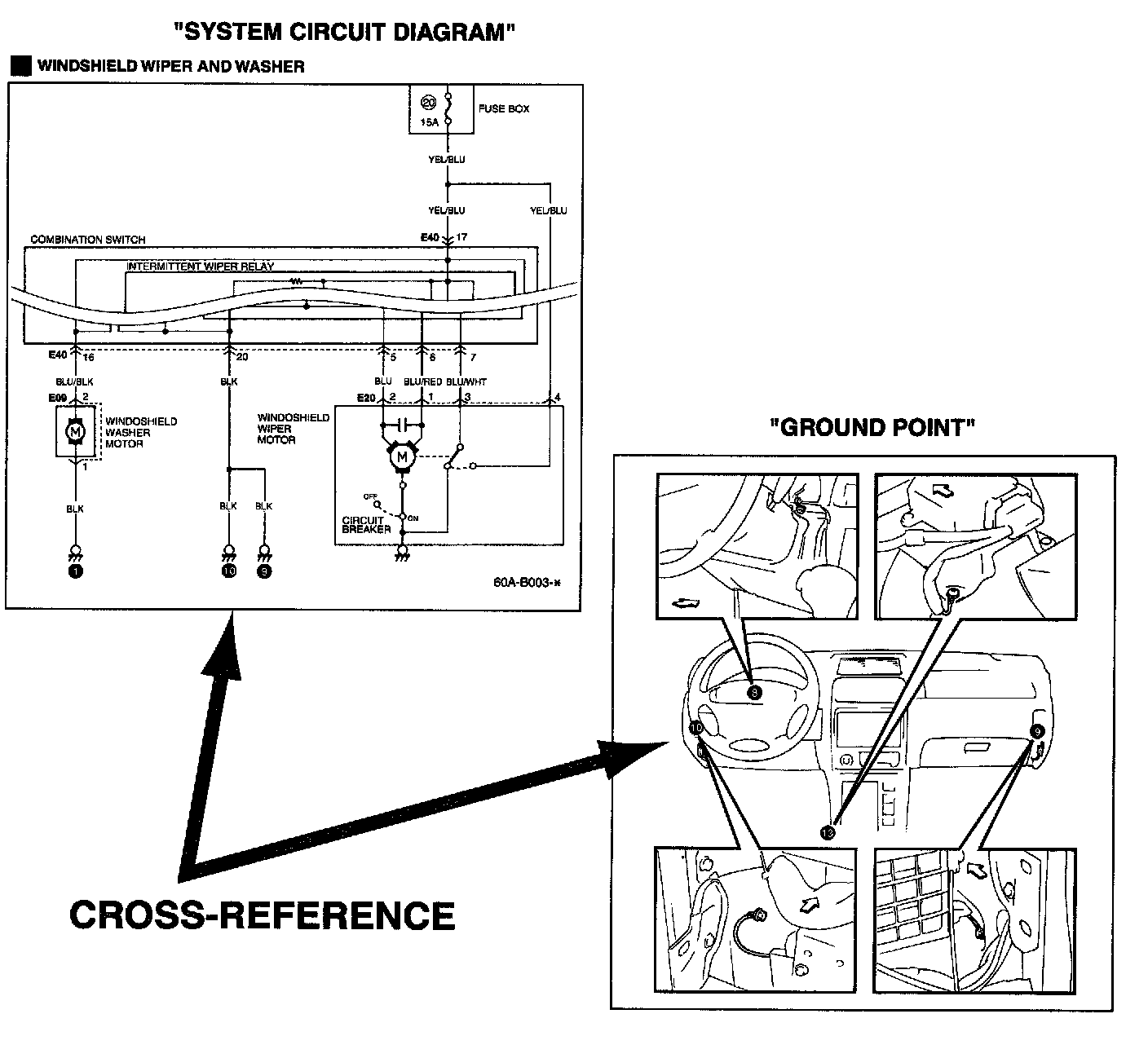 Look in ("GROUND POINT") for the black circle with the same numerical figure as the one described in ("SYSTEM CIRCUIT DIAGRAM").