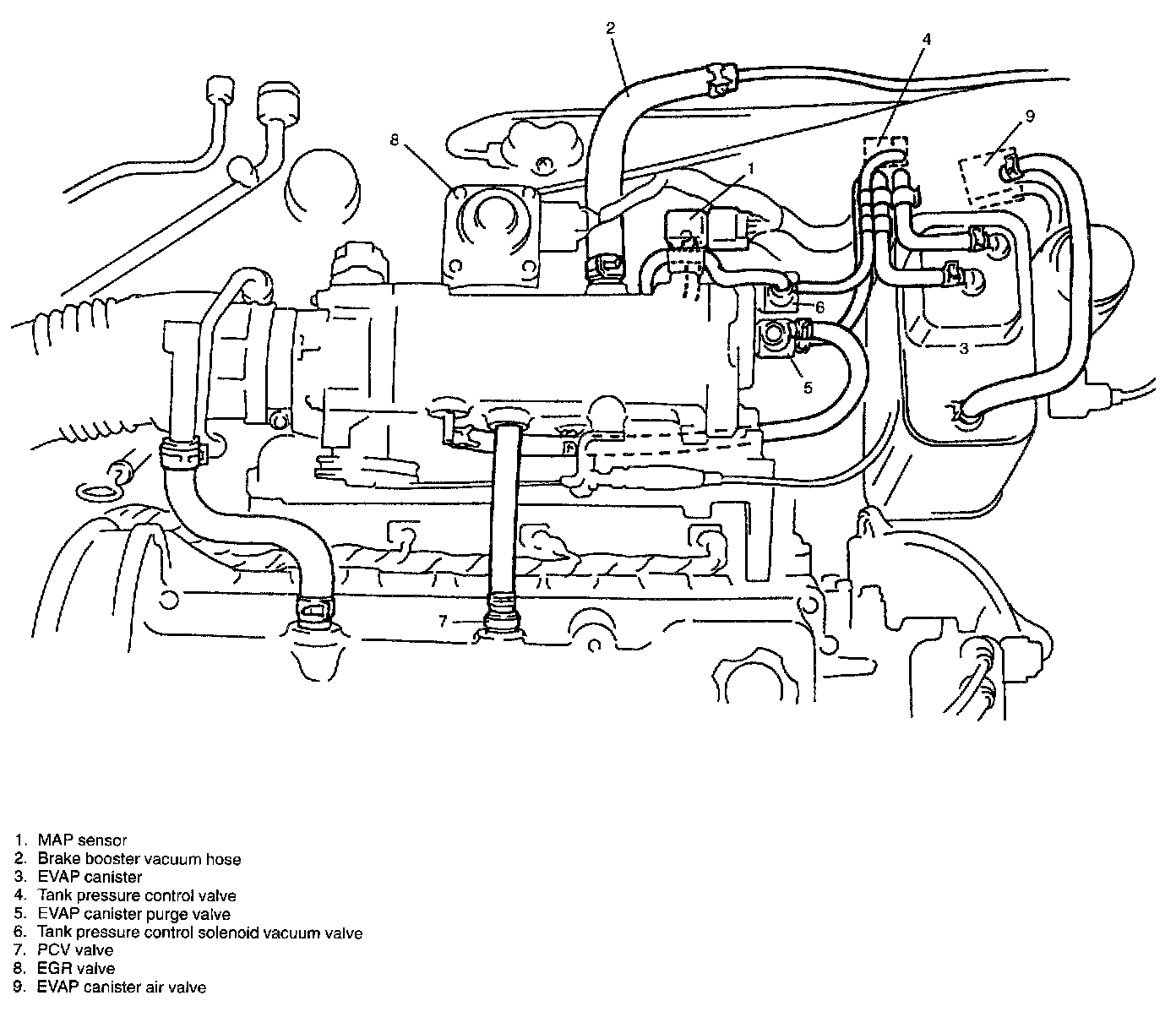 When hoses are disconnected and system components are removed for service, reinstall components properly, and route and connect hoses correctly after service. Refer to Emission Control Information Label for proper connection of hoses.