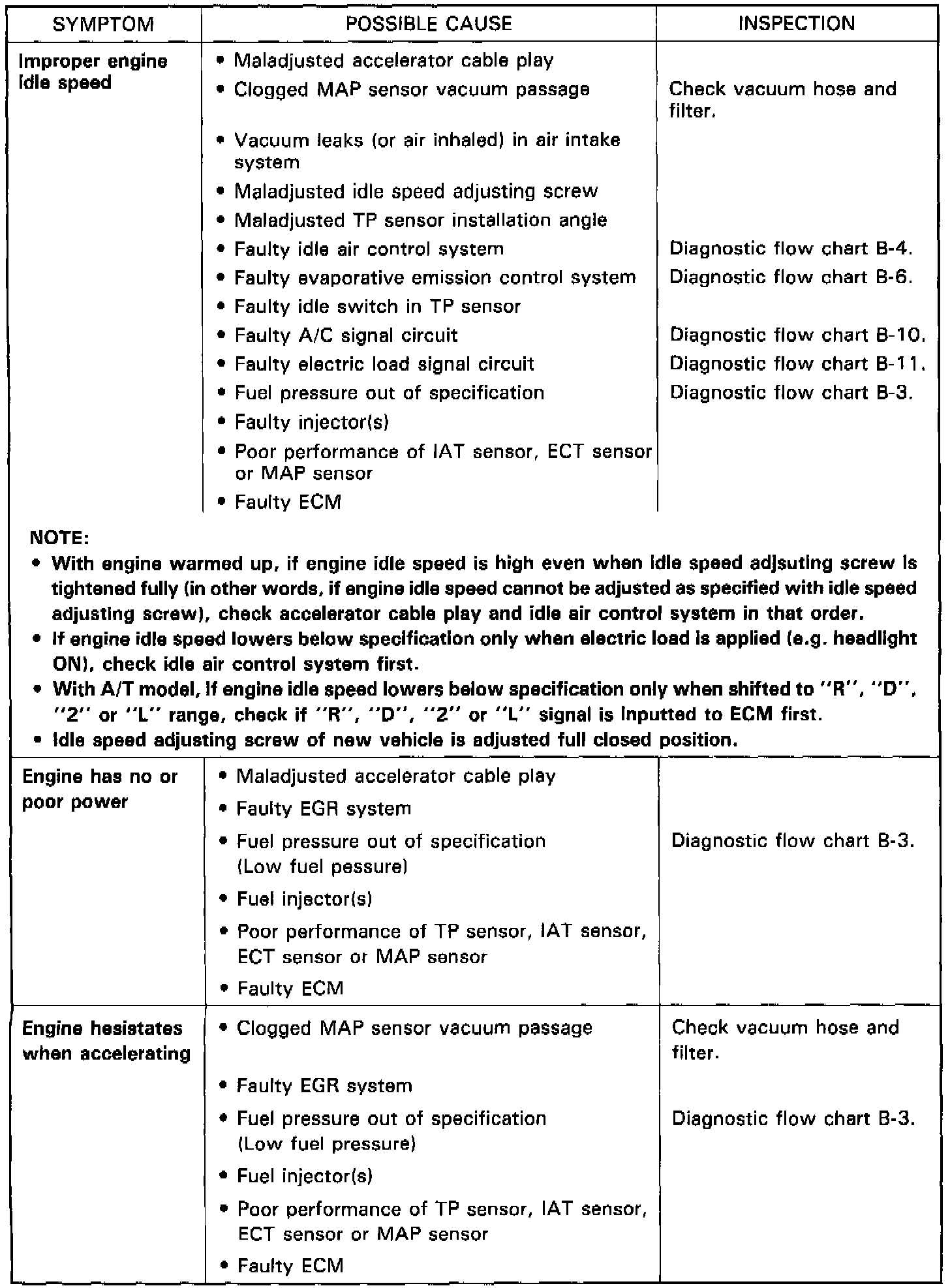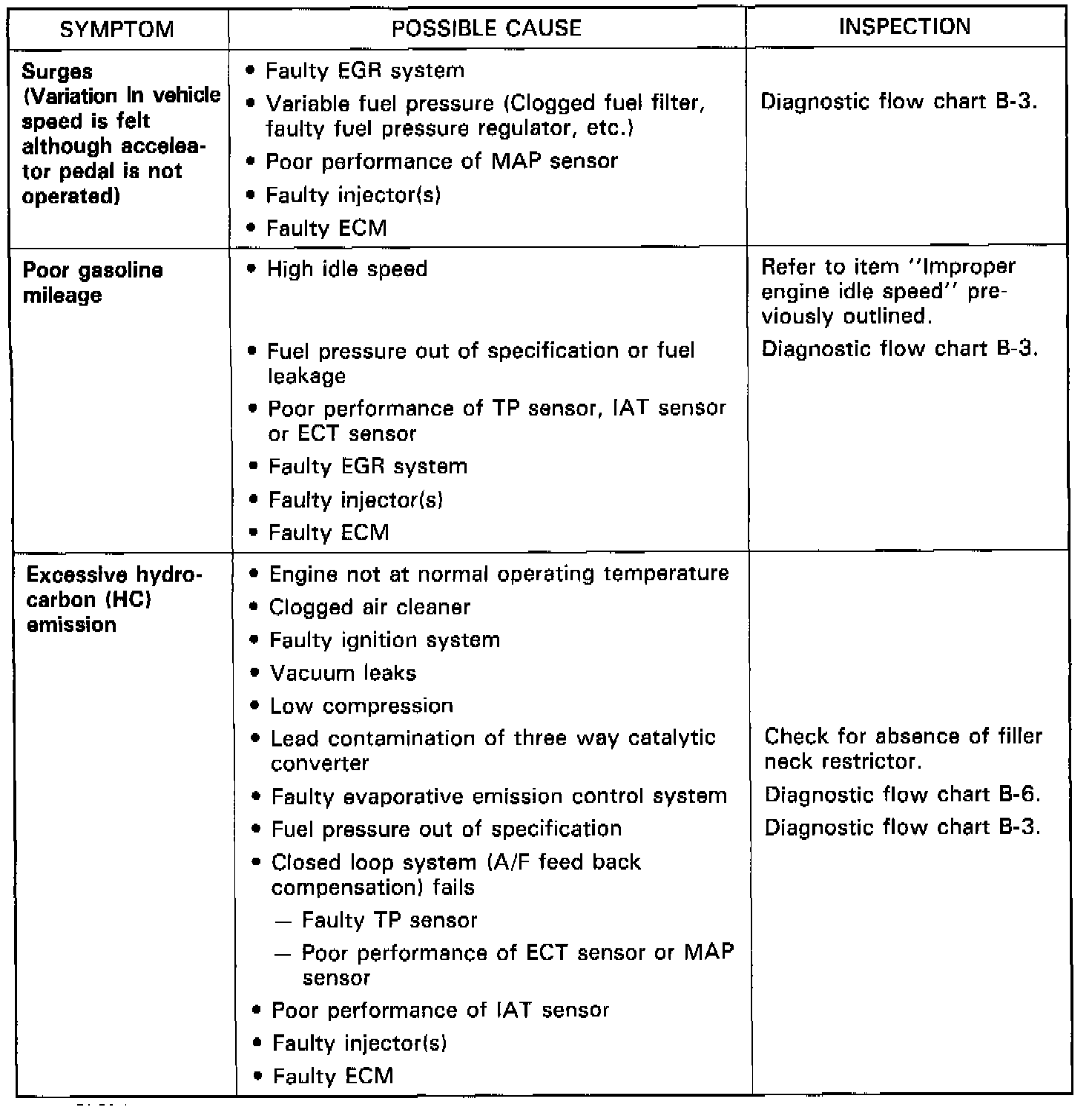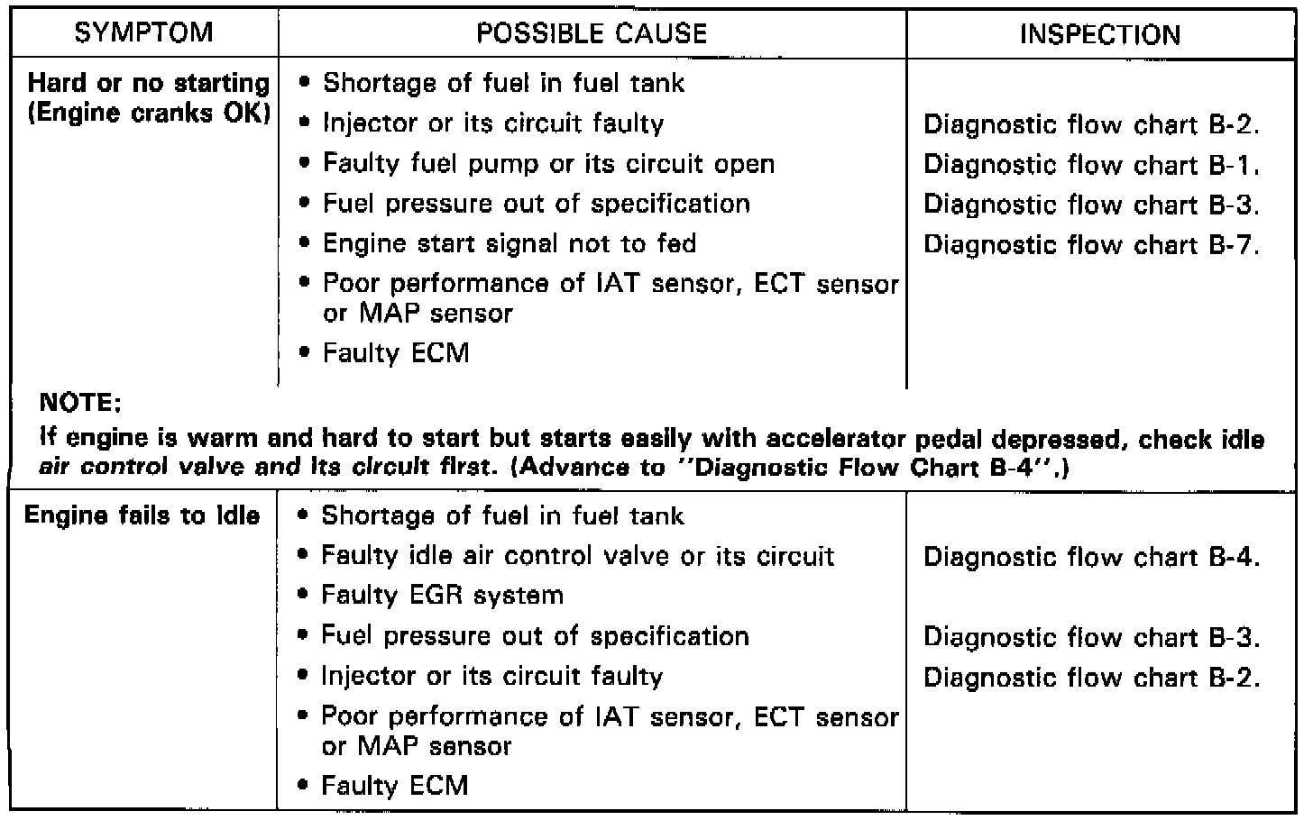 This database describes trouble diagnosis of Powertrain Control System parts whose trouble is not indicated by the on-board diagnostic system (self-diagnosis function). When diagnostic trouble code No. 12 is indicated by the on-board diagnostic system (self-diagnosis function) and assuredly those engine basic parts are all in good condition, check the above Electronic Fuel Injection system parts which may be a possible cause for each symptom of the engine.