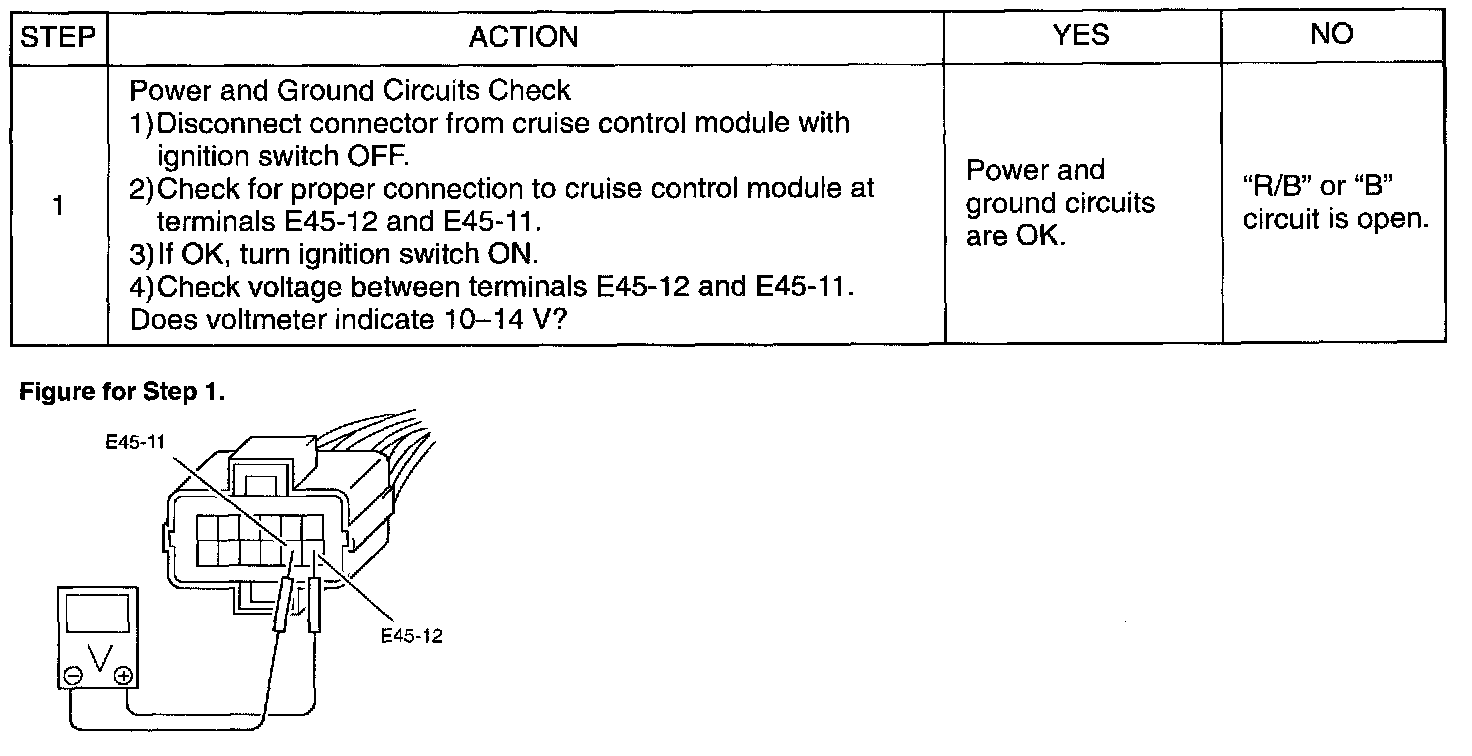 Cruise Control Module Power and Ground Circuits Check