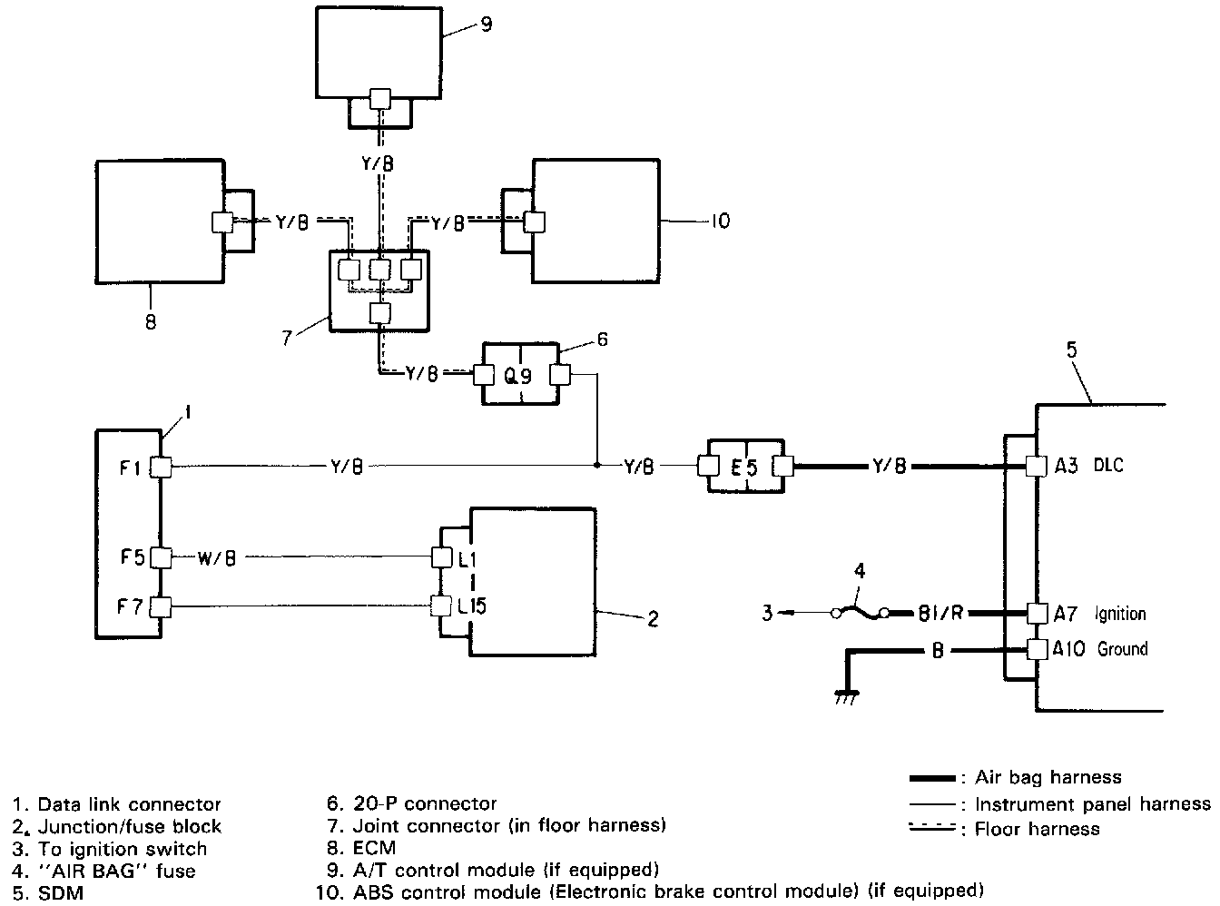 7. This test checks for a short from CKT "Y/B" (in air bag harness) to B+.