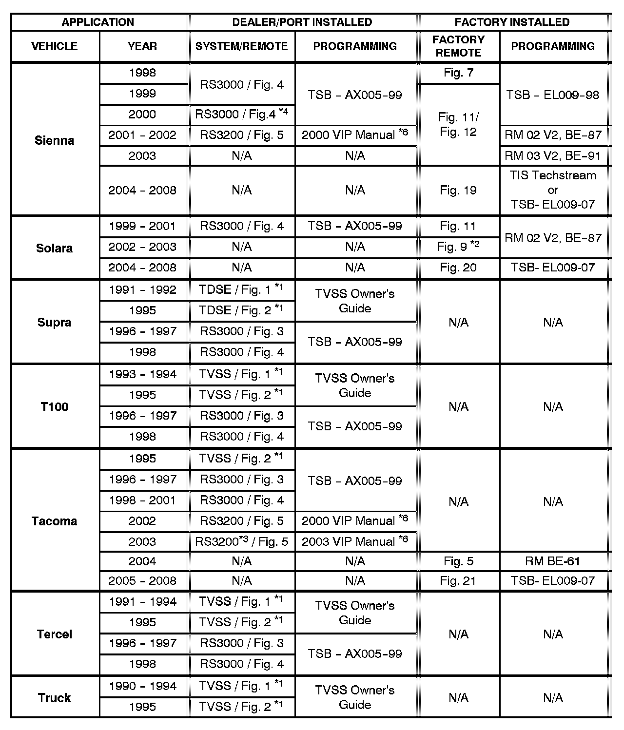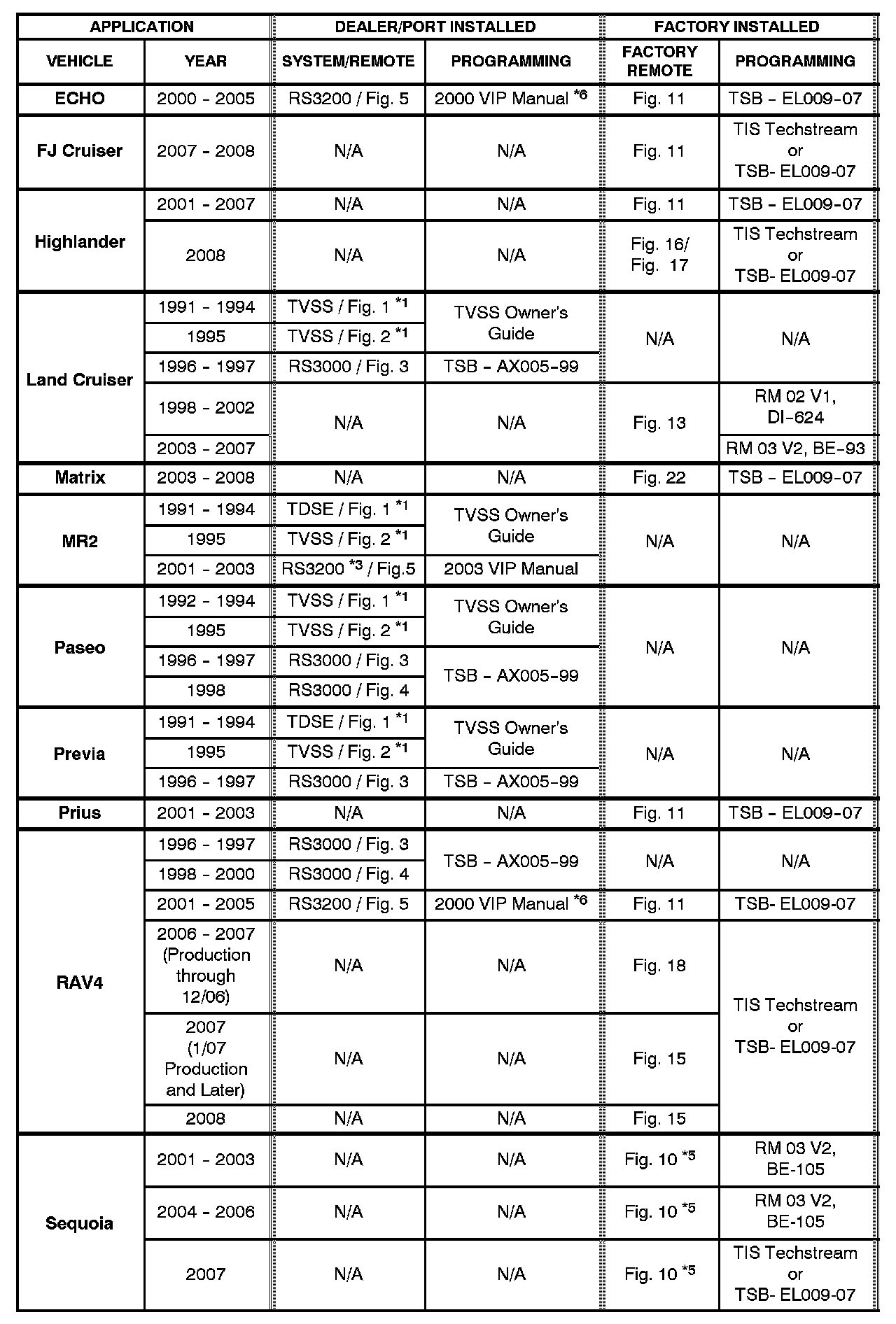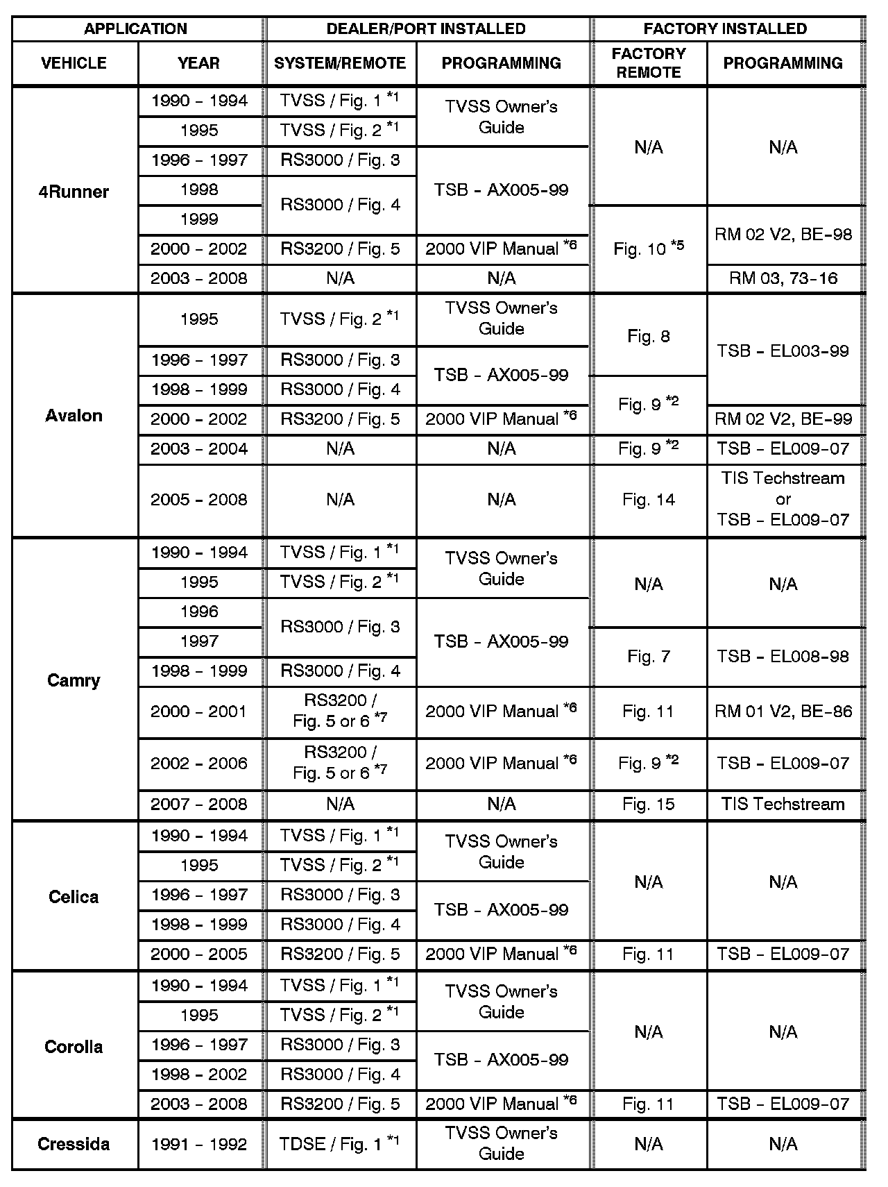 ^ 1990 - 2008 model year applicable Toyota vehicles.