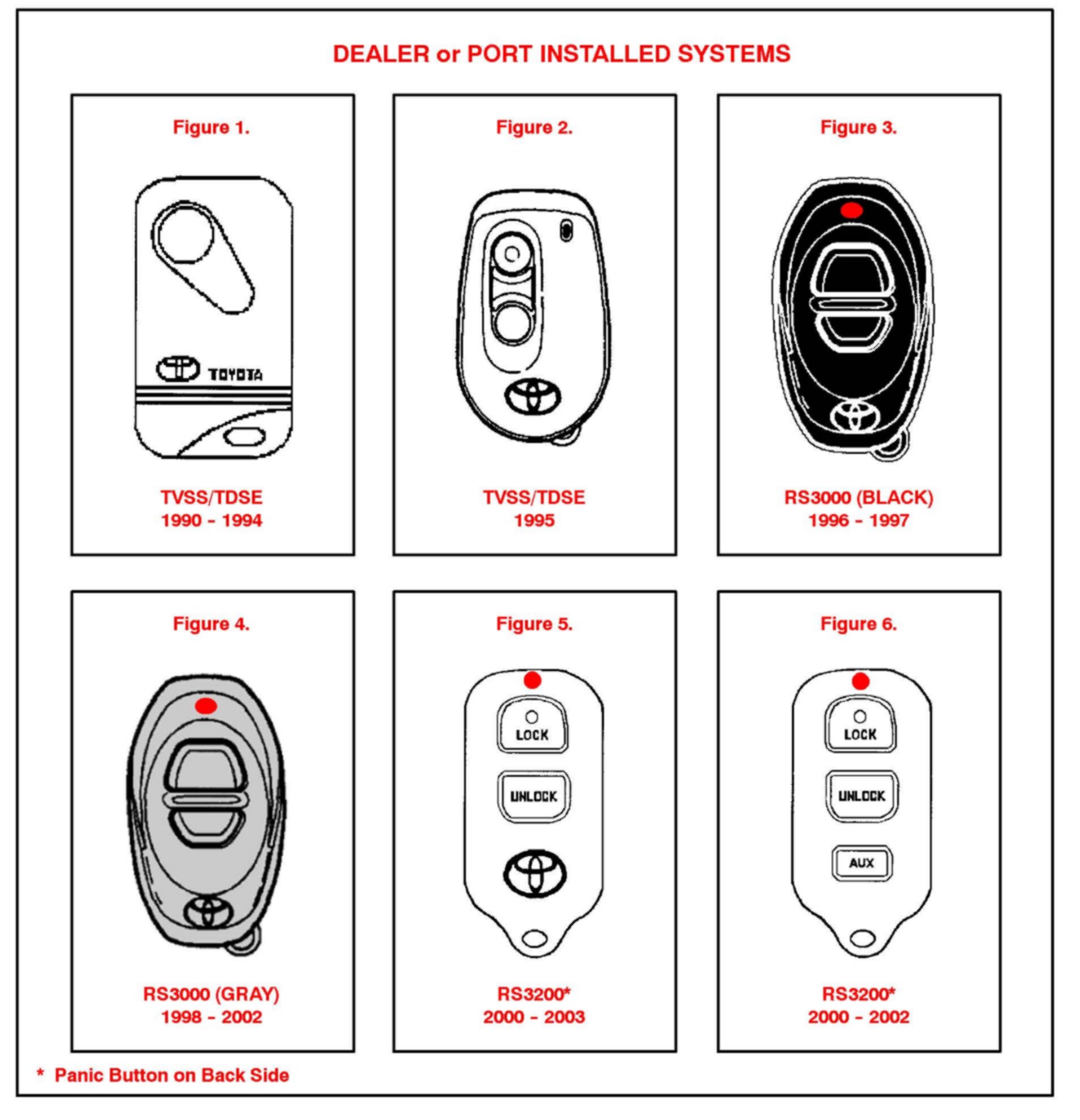 Difficulties during Remote Keyless Entry (RKE) Transmitter Programming can arise due to confusion between Toyota Factory Wireless systems and Toyota Port/Dealer installed systems. This bulletin will assist in identifying the system/correct remote transmitters for each vehicle, and provide the location of the most accurate programming procedure for each system.