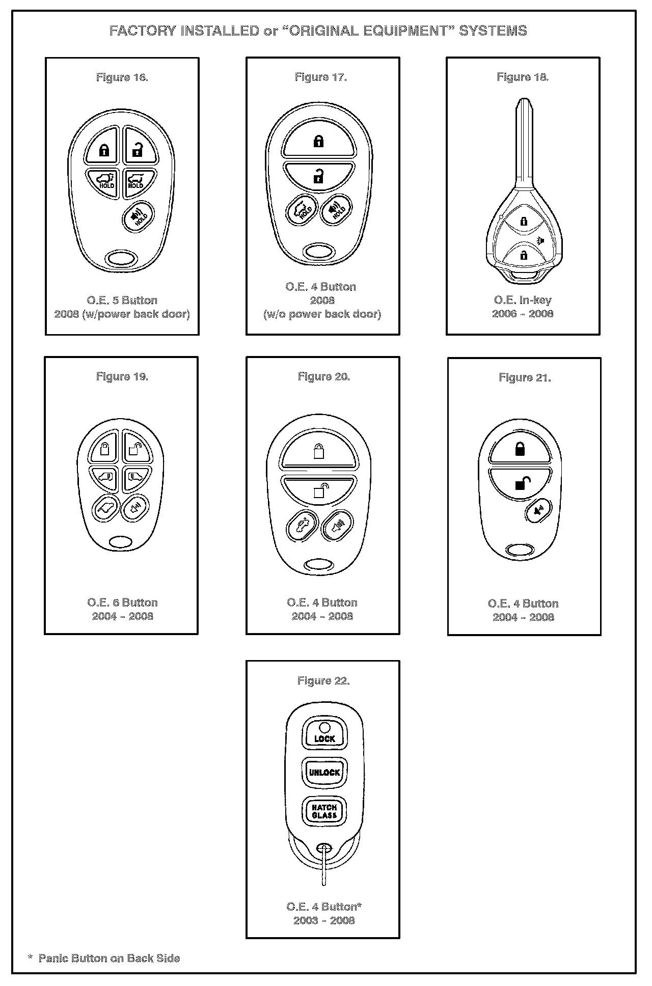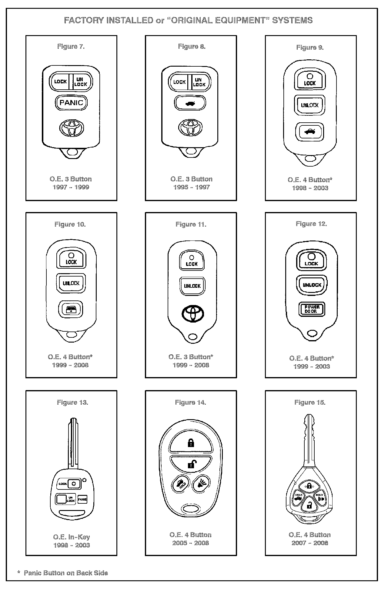 ^ Attempt to perform the factory wireless programming procedure to get a response from the vehicle. Select the "confirmation mode" and see if any "Lock/Unlock" response is received, if so, the vehicle has a factory system.