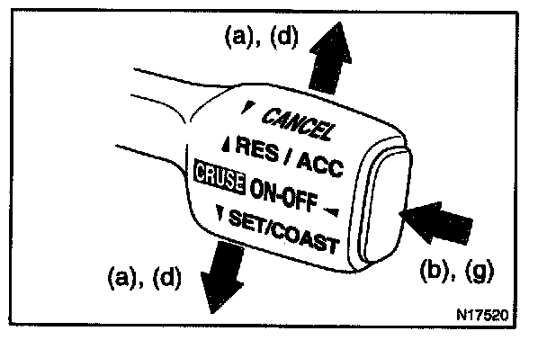 a. Keep the cruise control main switch assy to SET/COAST or RES/ACC position and hold it down or hold it up.