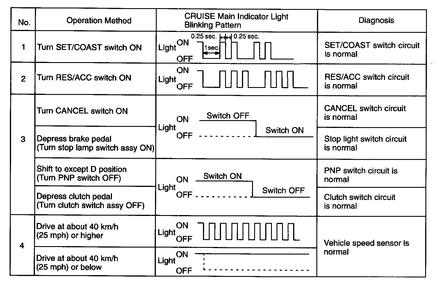 f. Read the blinking pattern of the CRUISE main indicator light.