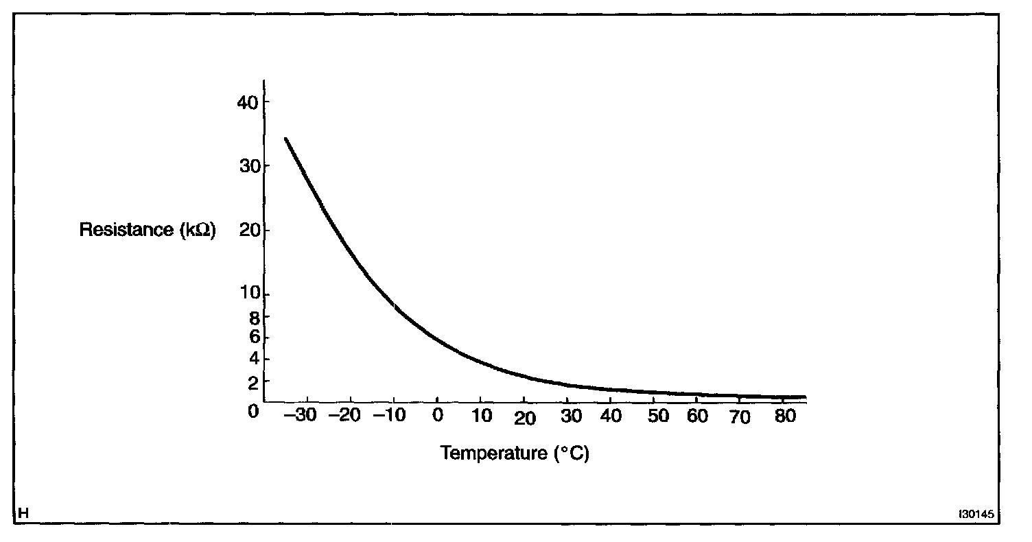 a. Check resistance between terminals 1 and 2 of cooler thermistor No.1 at each temperature, as shown in the chart.