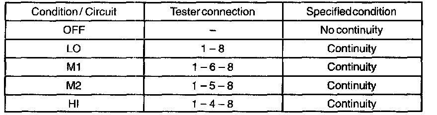 Check the continuity between terminals while switch is pressed, as shown in the chart.