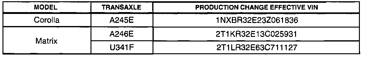 ^ 2003 model year Corolla & Matrix vehicles produced BEFORE the Production Change Effective VINs shown below.