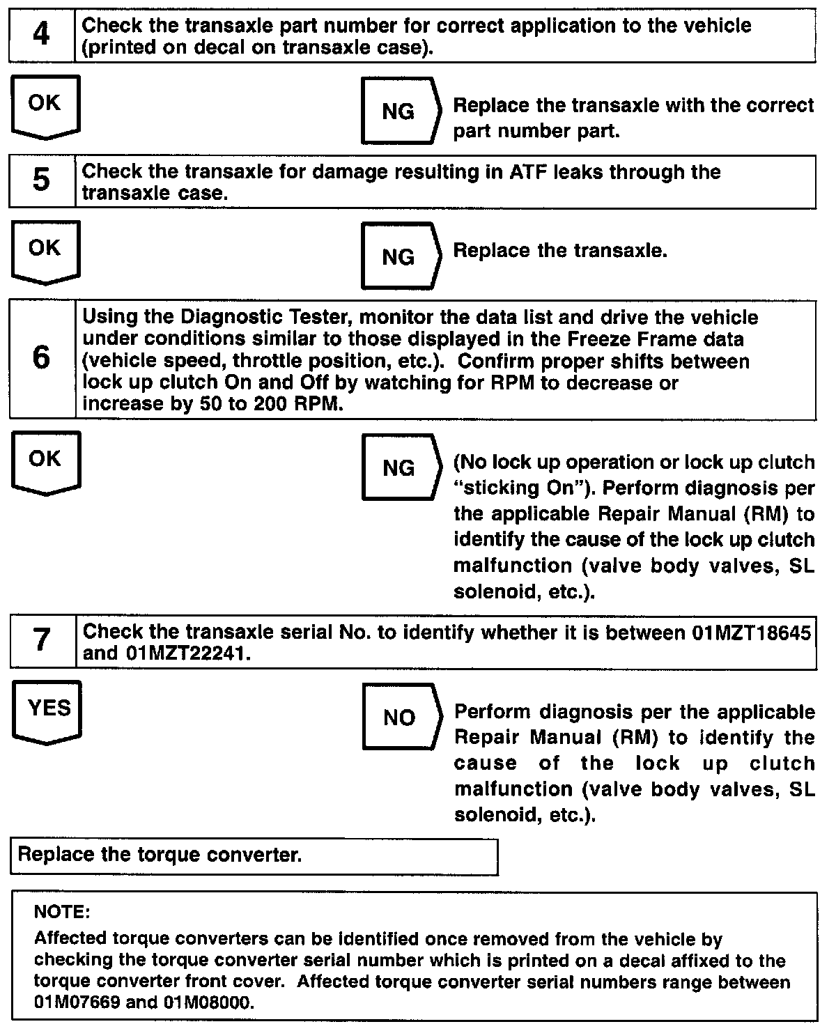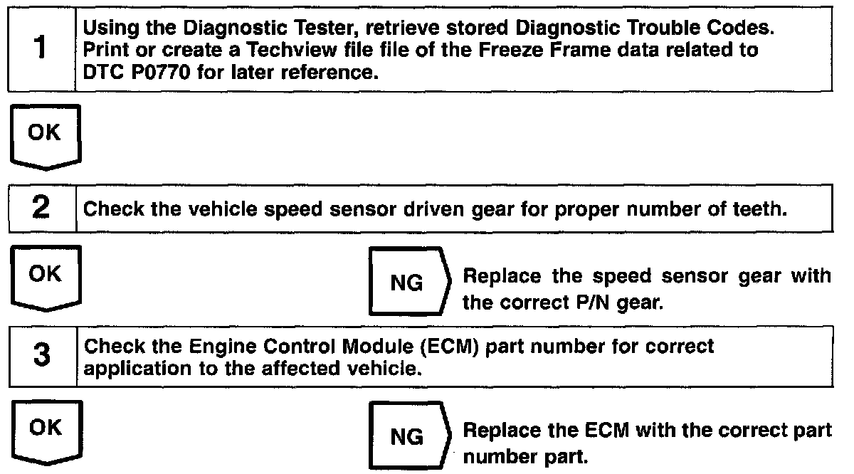 Some 2003 model year Corolla and Matrix vehicles may exhibit M.I.L. "ON" with DTC P0770 (Shift Solenoid E Malfunction). Several production changes have occurred to correct this condition. Follow the repair procedures shown to address the vehicles that exhibit the condition.