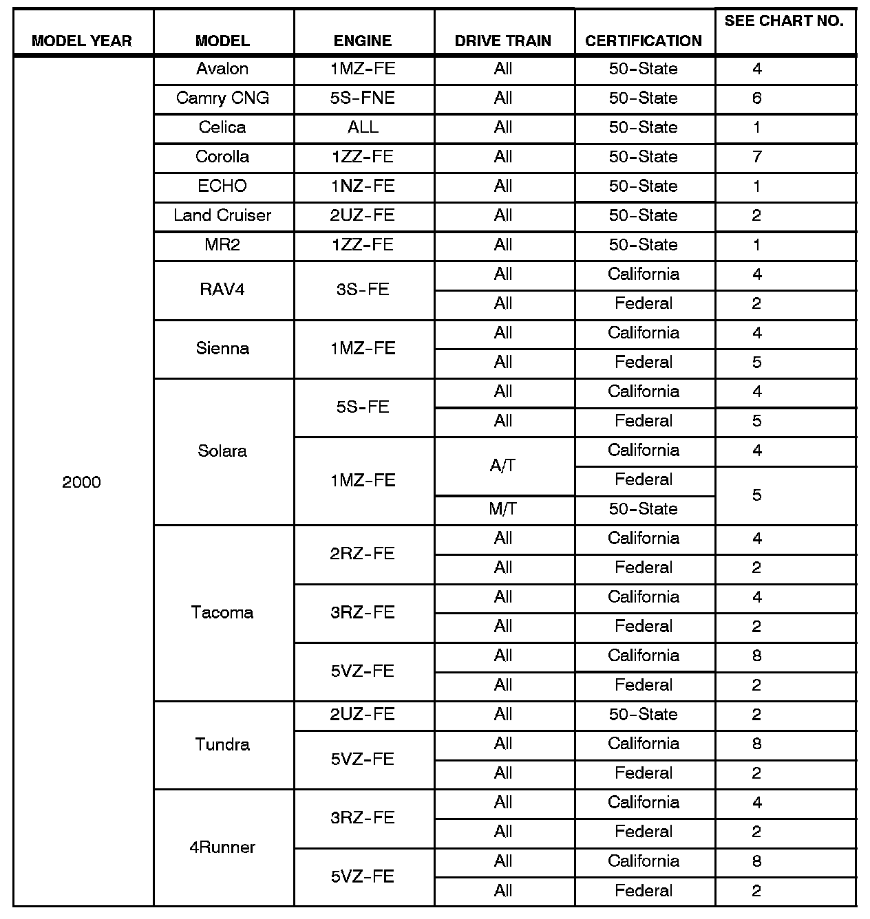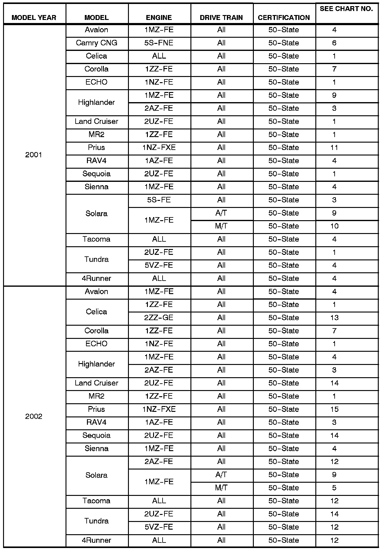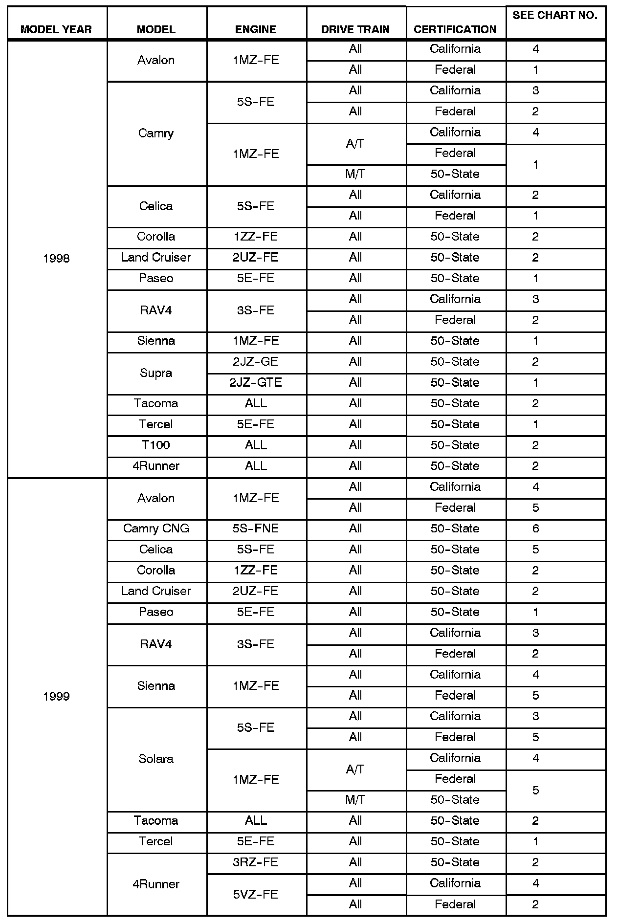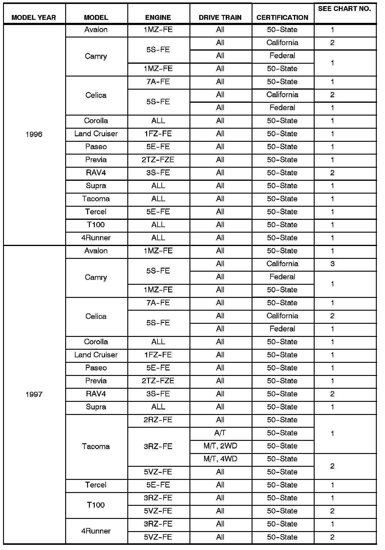 ^ All 1996 - 2003 model year Toyota vehicles.