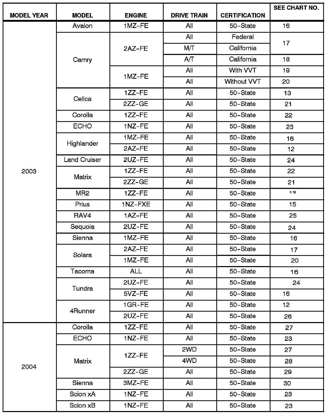 ^ 2004 model year Corolla, ECHO, Matrix and Sienna vehicles.