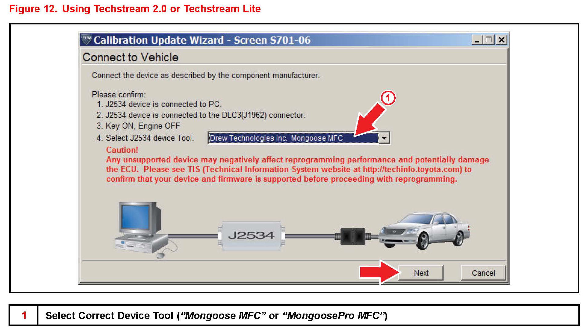 ^ If using Techstream 2.0, select "MongoosePro MFC".