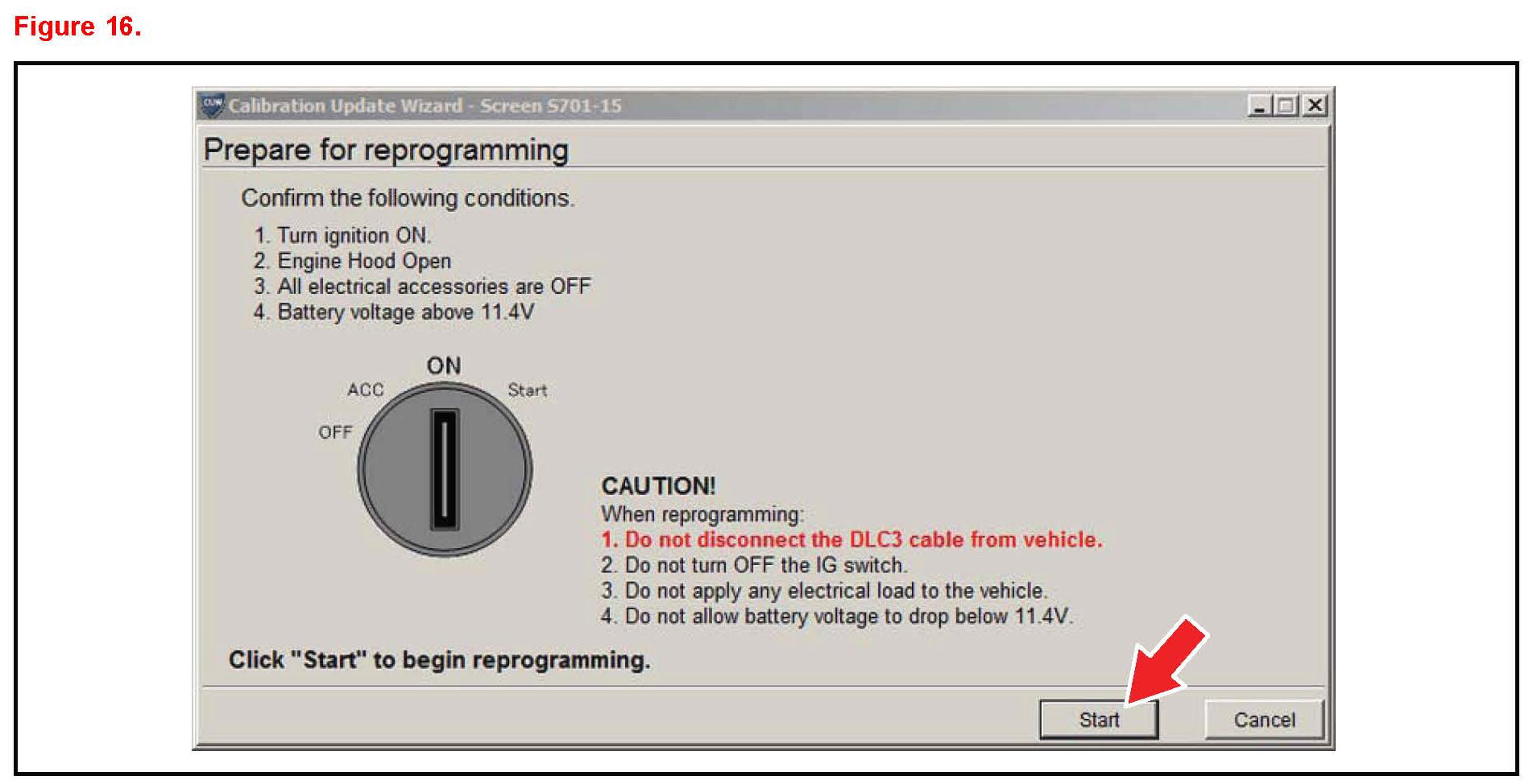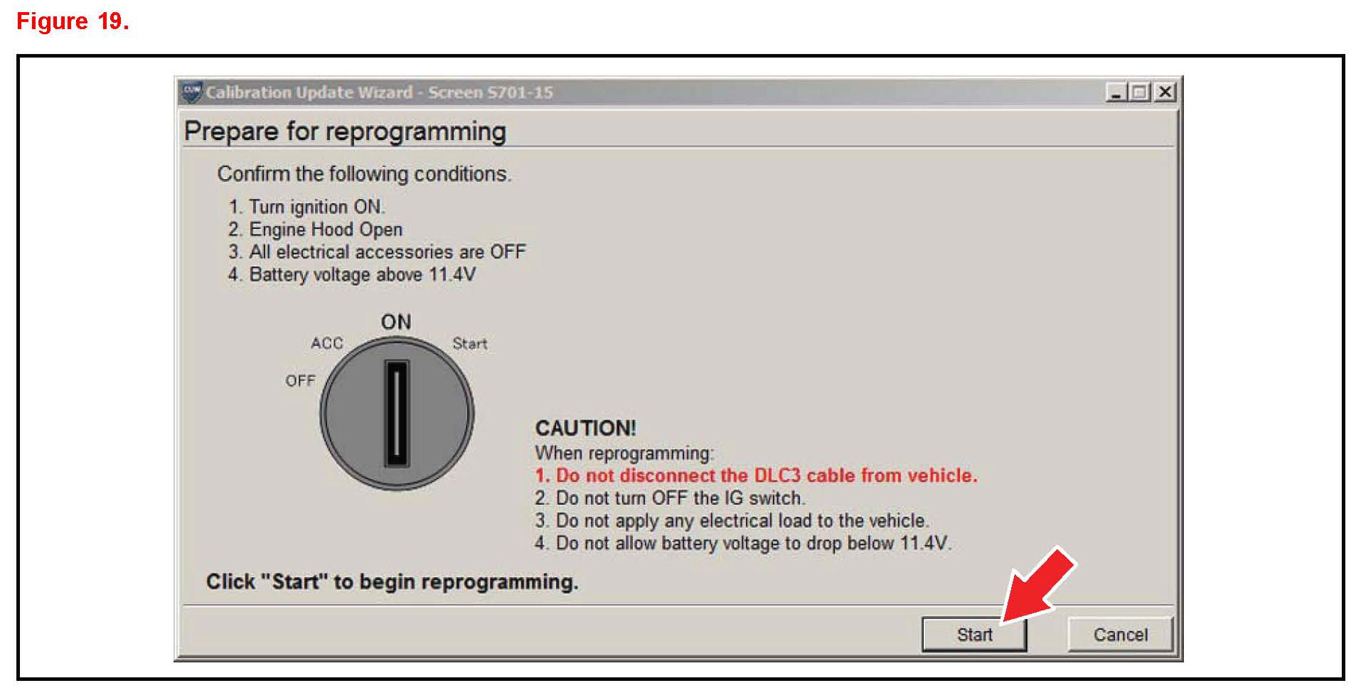 K. Turn ignition to the ON position. Then click "Start".