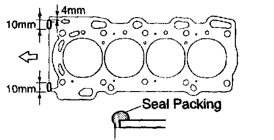 b. Apply seal packing to the cylinder head gasket as shown in the illustration.