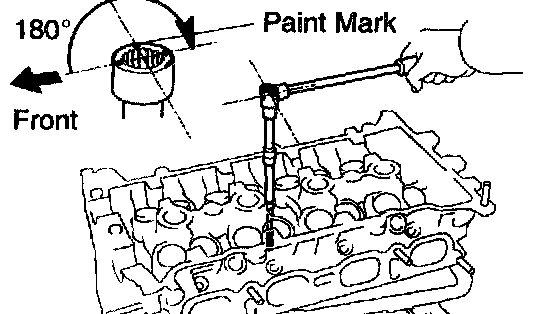 c. Mark the front of the cylinder head bolt with paint.