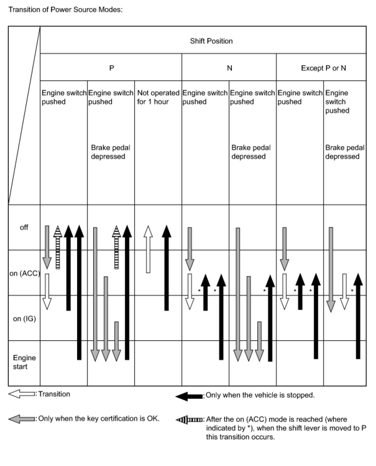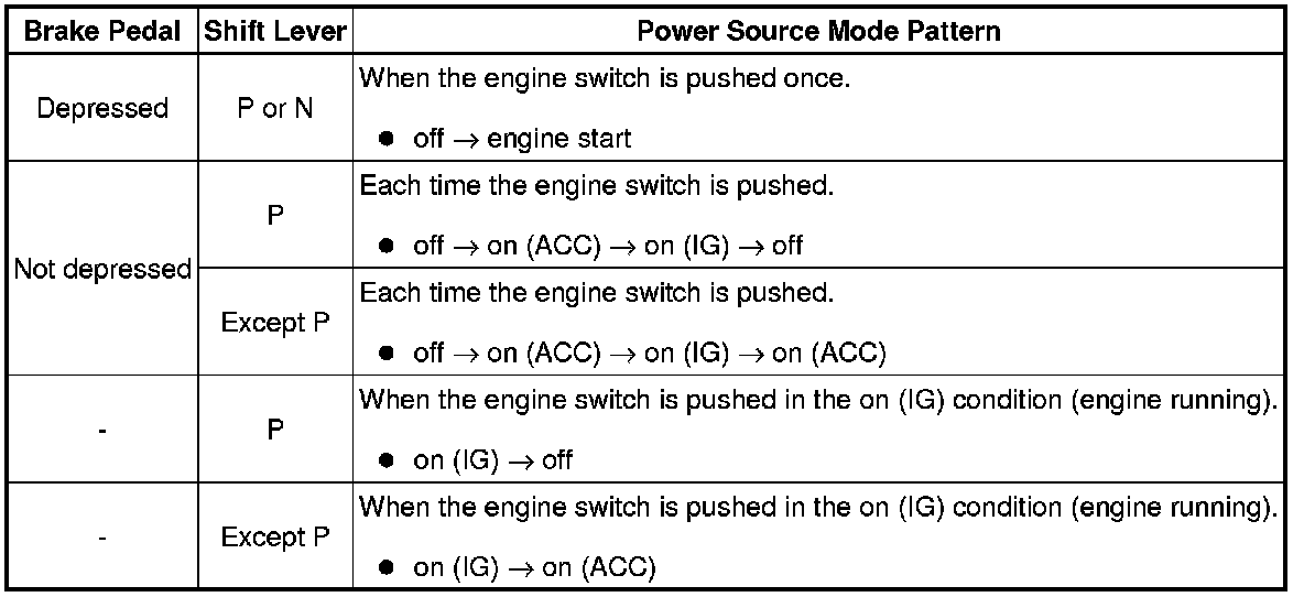 (a) This system has different power source mode patterns depending on the brake pedal condition and shift lever position.