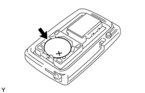(a) Install a new battery (lithium battery: CR1632) with the positive (+) side facing upward, as shown in the illustration.
