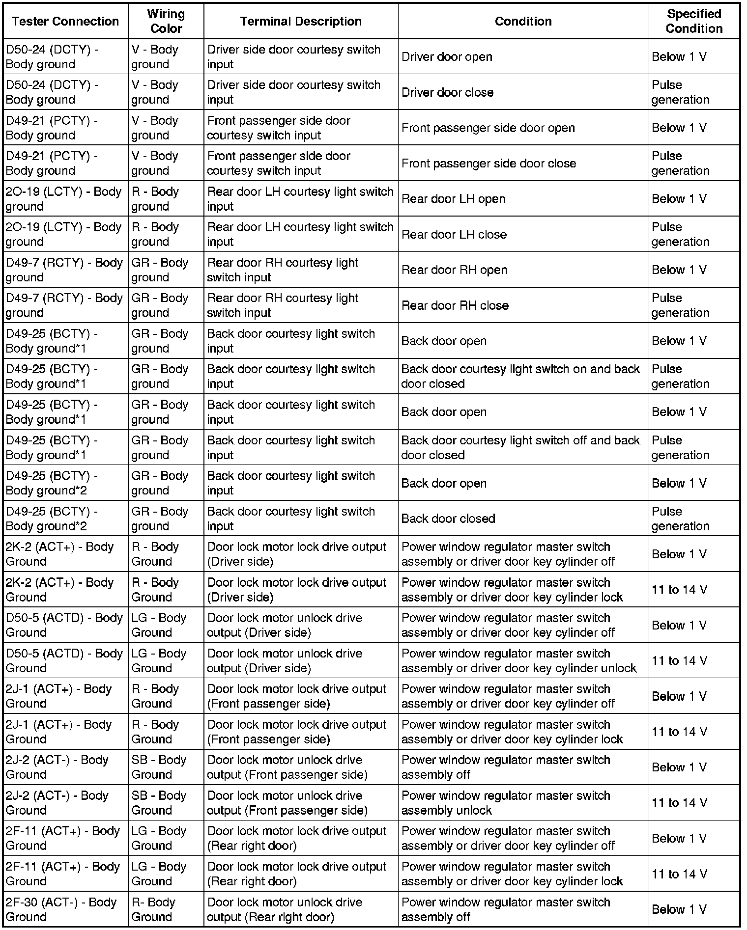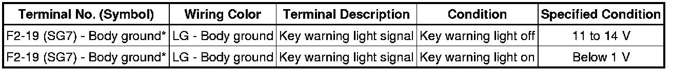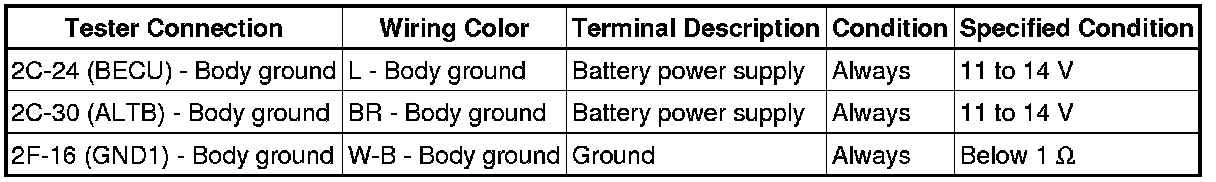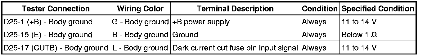 (f) If the result is not as specified, the main body ECU (driver side junction block assembly) may have a malfunction.