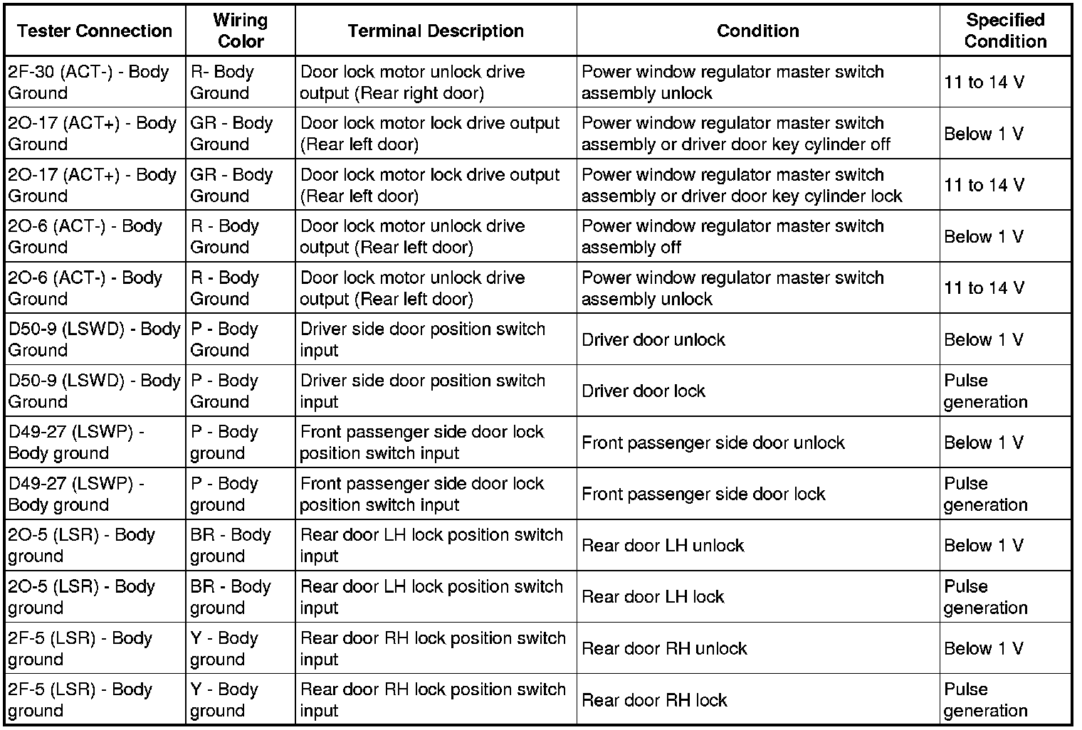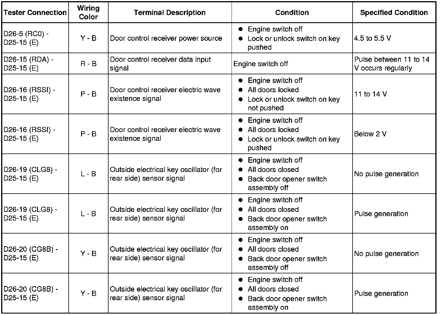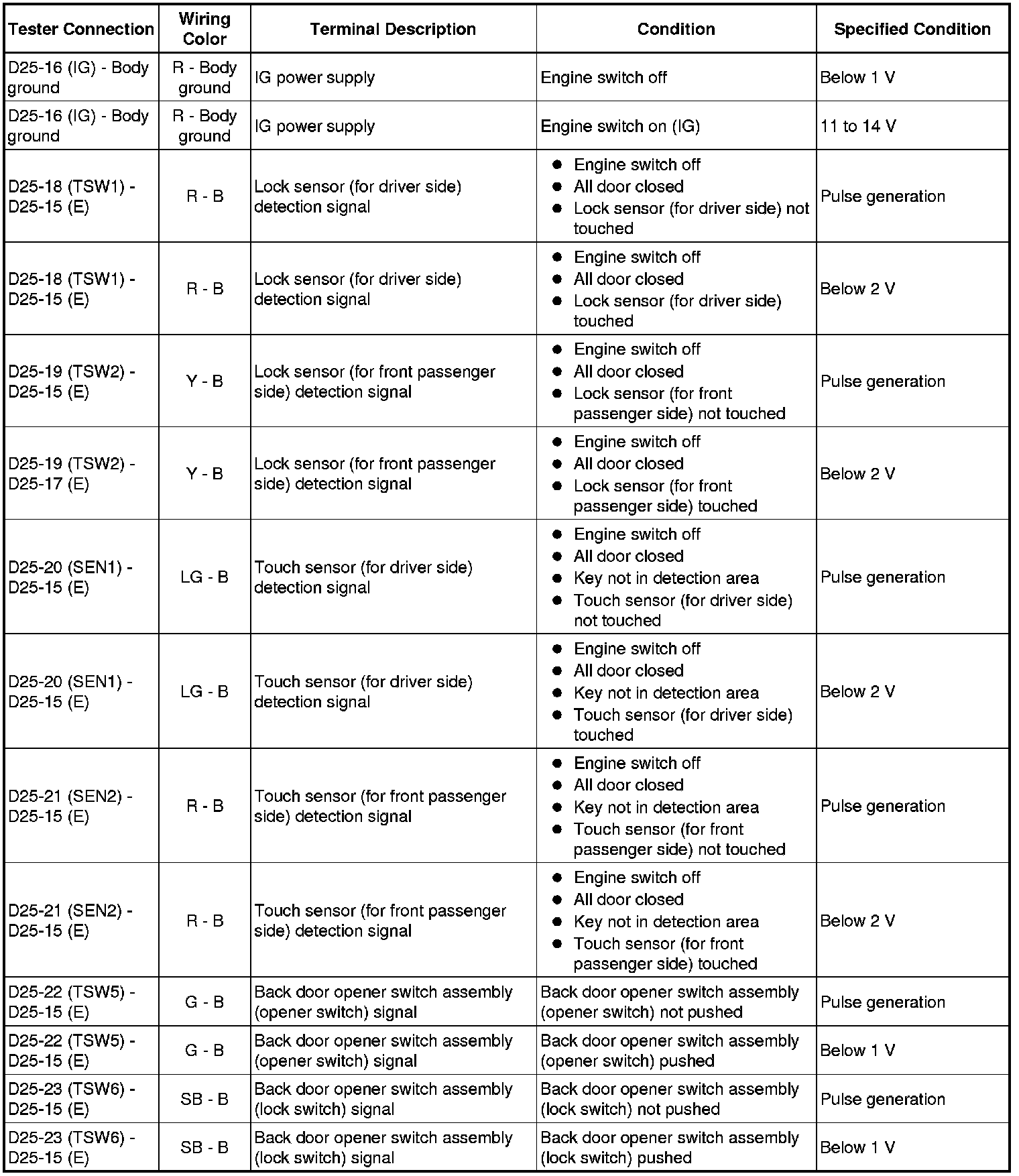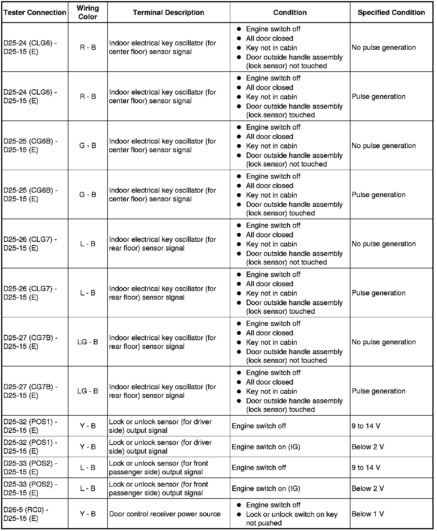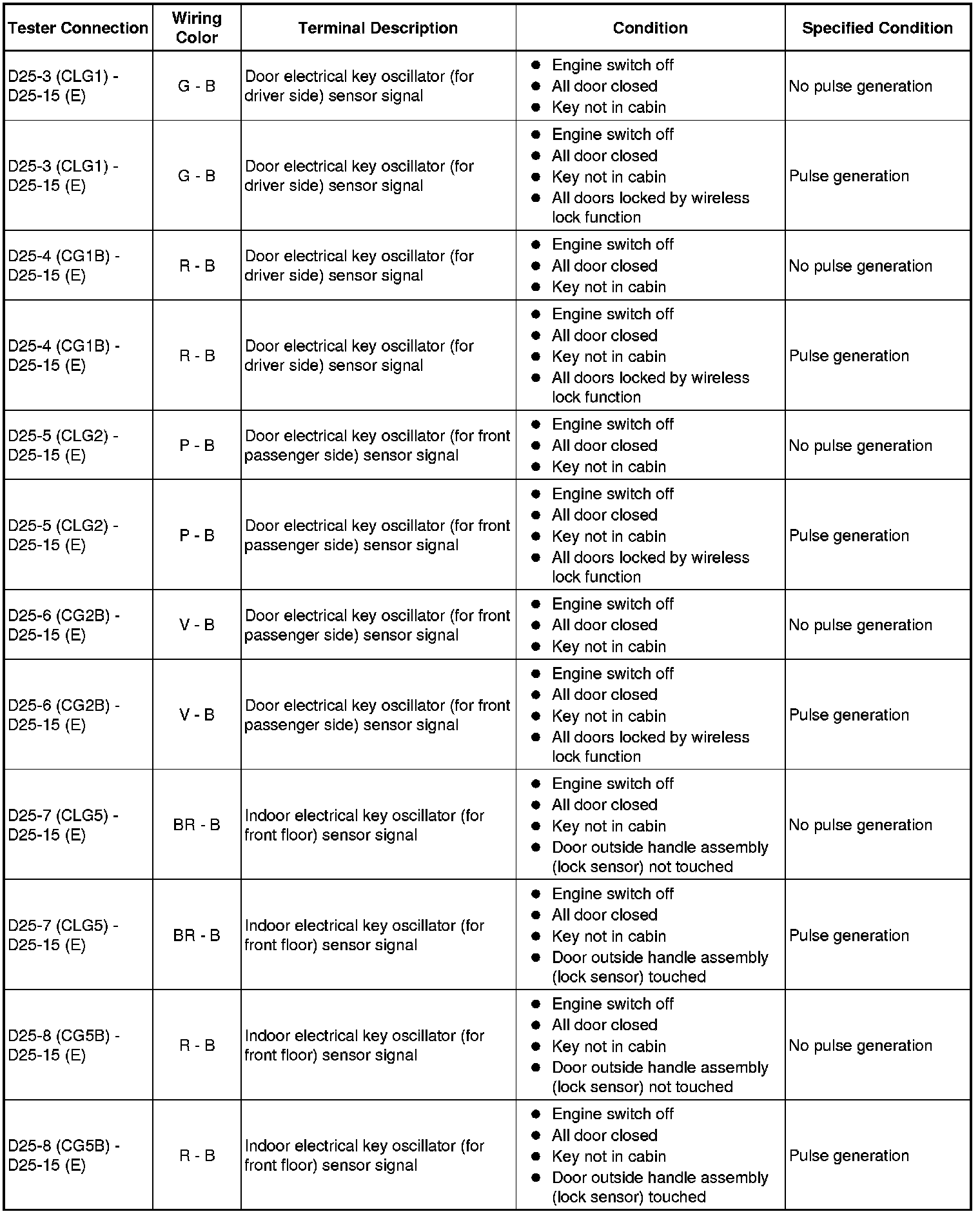 (e) Measure the voltage and check for pulses according to the value(s) in the table below.