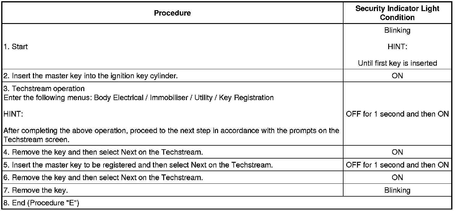* A brief outline of a key code registration procedure is shown above. For detailed information, refer to the Techstream screen.