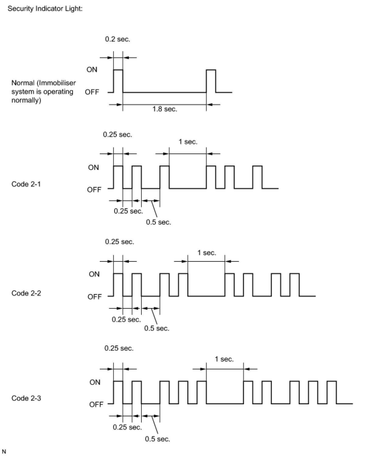 * When the engine immobiliser system is operating normally and the key is pulled out, the security indicator light blinks continuously.