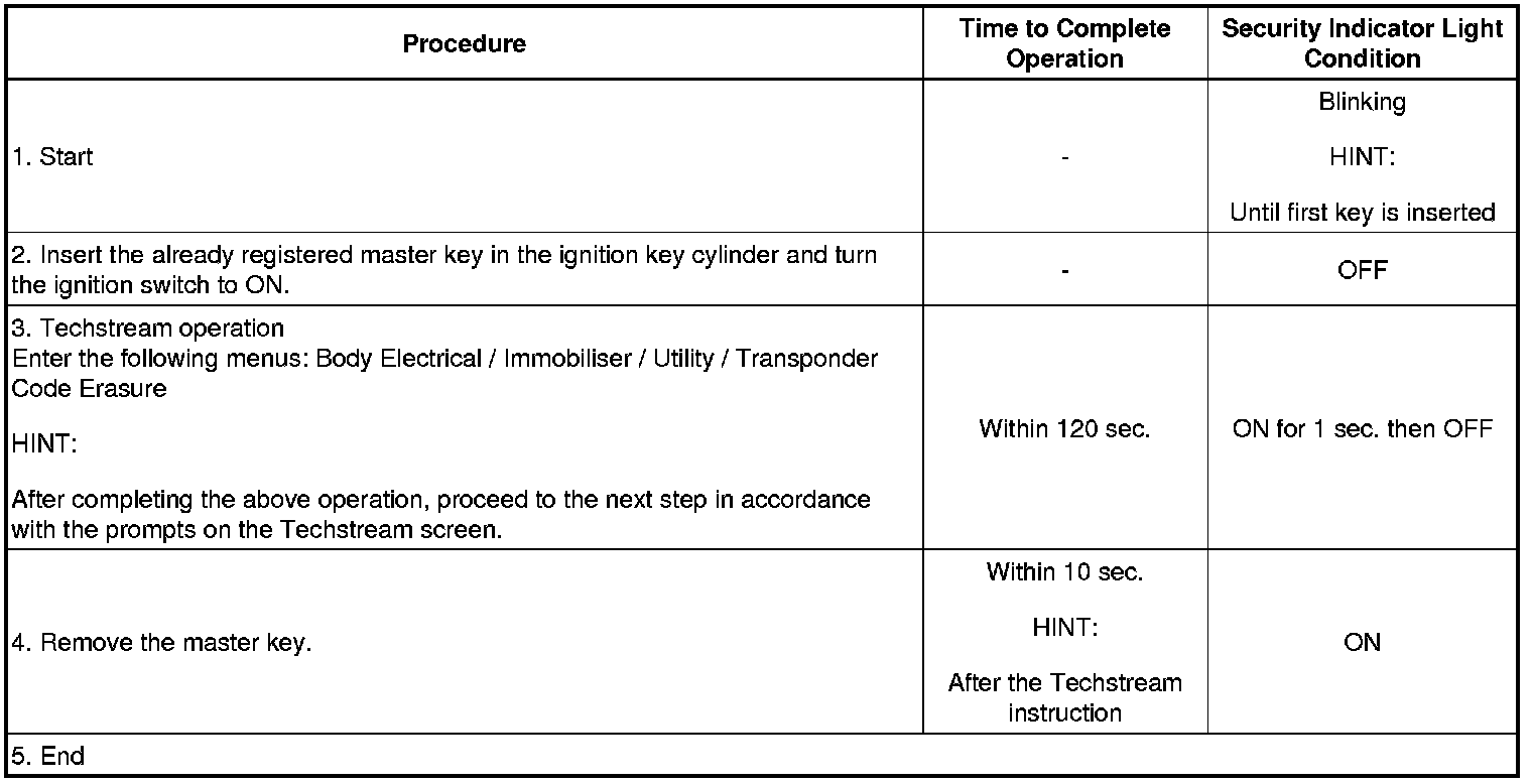 * To perform this procedure, at least 1 key should have been registered to the transponder key ECU assembly.