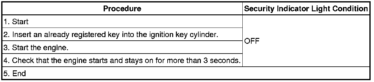 * After the registration, turning the ignition switch to the START position may not start the engine on the first try. If so, turn the ignition switch to the START position again.