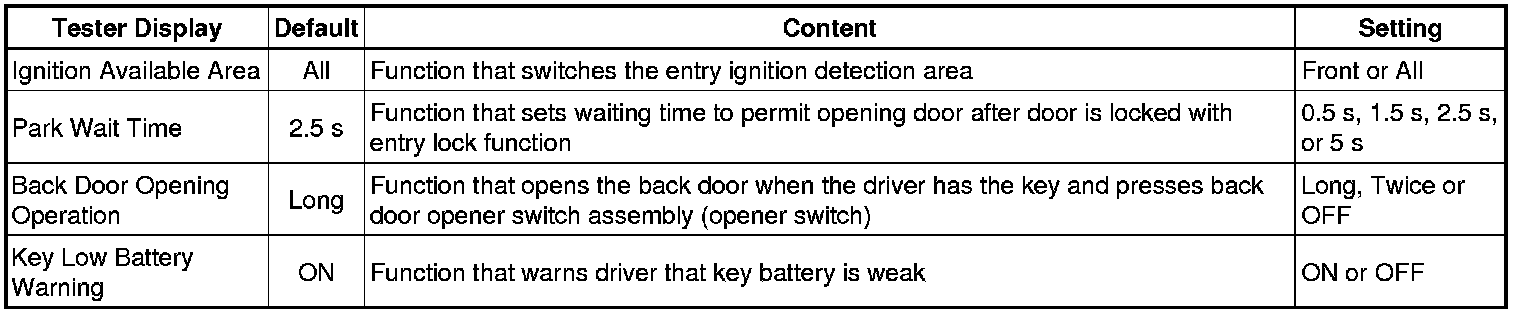 THEFT DETERRENT / KEYLESS ENTRY: SMART KEY SYSTEM (for Entry Function): CUSTOMIZE PARAMETERS