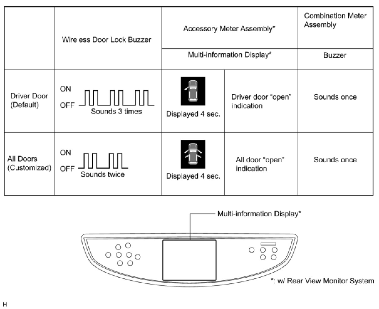 (c) The certification ECU (smart key ECU assembly) sounds the buzzers of the wireless door lock buzzer and combination meter to inform the user that the mode has been changed.
