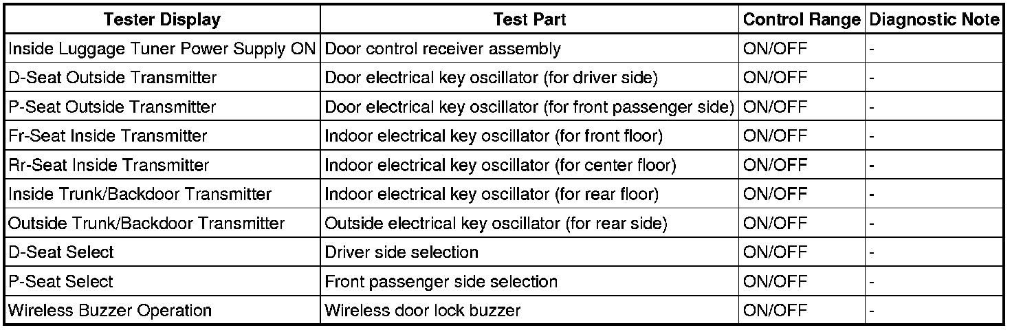 THEFT DETERRENT / KEYLESS ENTRY: SMART KEY SYSTEM (for Entry Function): DATA LIST / ACTIVE TEST