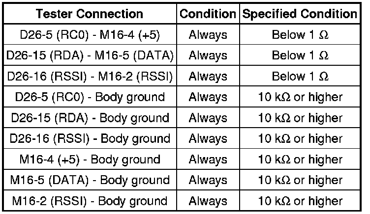 (b) Measure the resistance according to the value(s) in the table below.