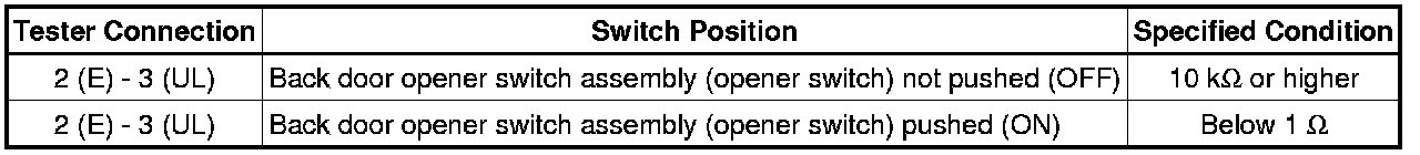 4. INSPECT BACK DOOR OPENER SWITCH ASSEMBLY
