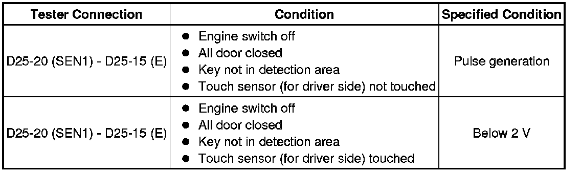 (c) Measure the voltage and check for pulses according to the value(s) in the table below.
