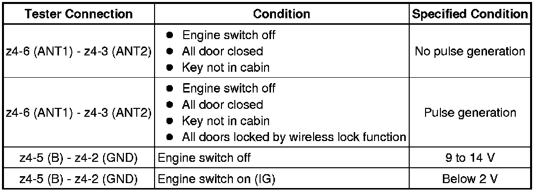 (b) Measure the voltage and check for pulses according to the value(s) in the table below.