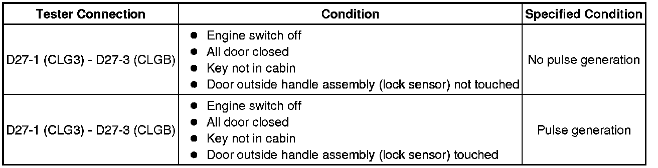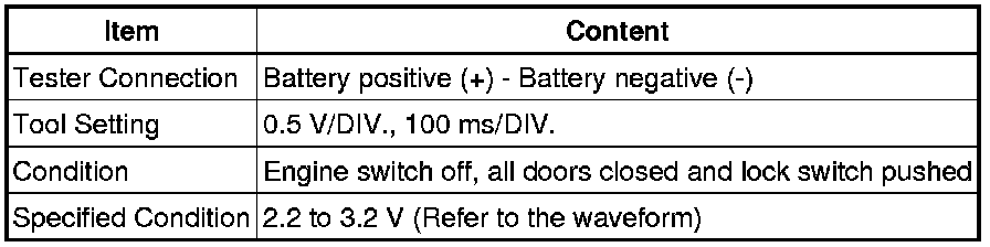 When measuring the battery voltage, while operating the lock switch of a door outside handle assembly, bring the key within the entry operating range to perform the measurement. For the entry operating range, refer to System Description Smart Key System (for Entry Function).