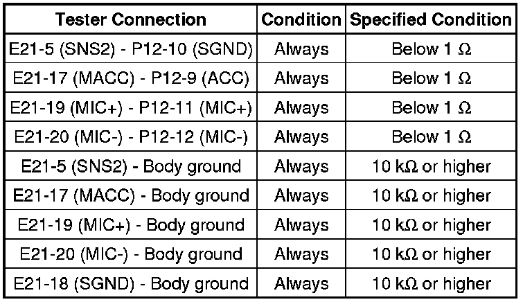 NAVIGATION / MULTI INFO DISPLAY: NAVIGATION SYSTEM: Microphone Circuit between Microphone and Navigation Receiver Assembly
