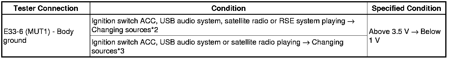 The MUTE signal is sent to reduce noise and a popping sound generated when switching the mode etc. If there is an open in the circuit, noise can be heard from the speakers when changing the sound source. If there is a short in the circuit, even though the navigation receiver assembly is functioning normally, no sound or only an extremely faint sound can be heard.