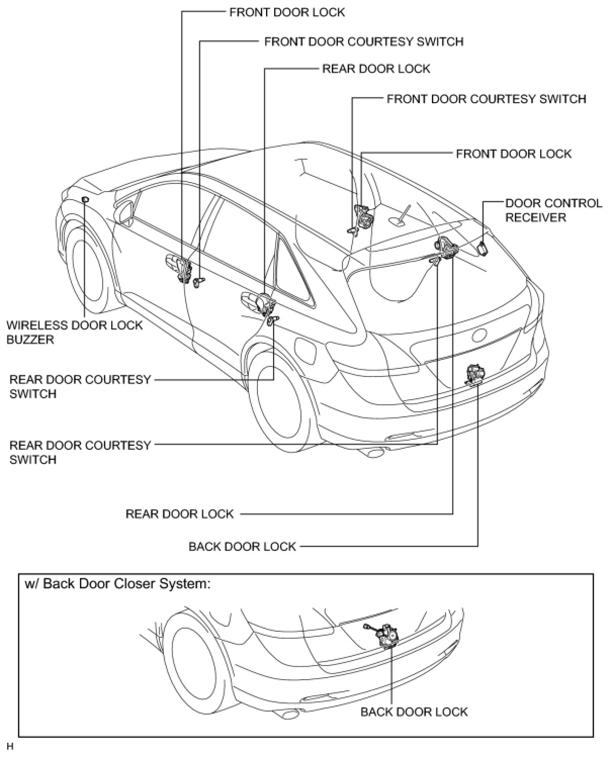 DOOR LOCK: WIRELESS DOOR LOCK CONTROL SYSTEM (w/ Smart Key System): PARTS LOCATION