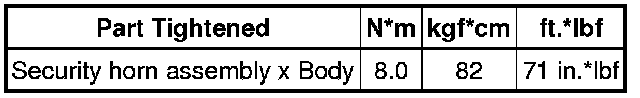 SPECIFICATIONS: THEFT DETERRENT / KEYLESS ENTRY: TORQUE SPECIFICATIONS