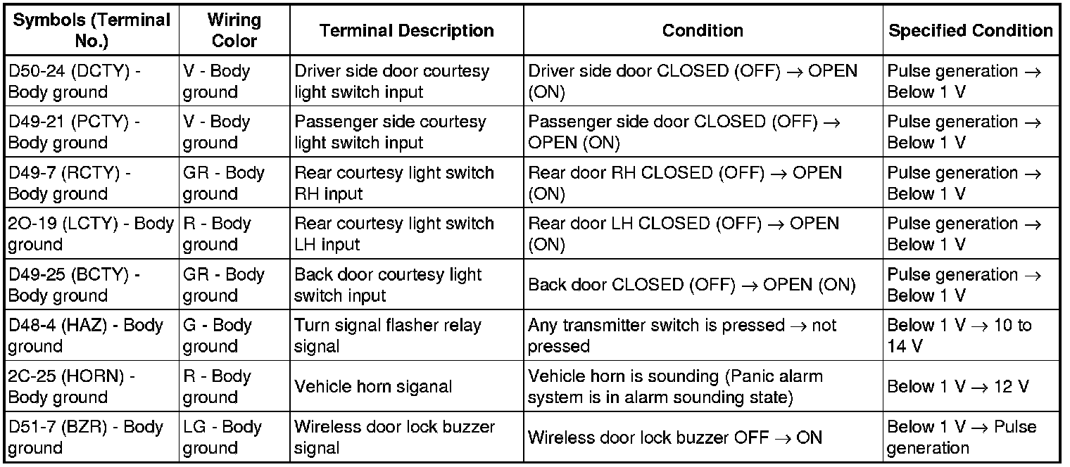 DOOR LOCK: WIRELESS DOOR LOCK CONTROL SYSTEM (w/ Smart Key System): TERMINALS OF ECU