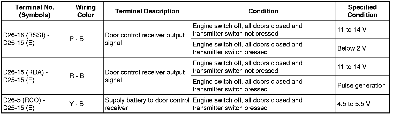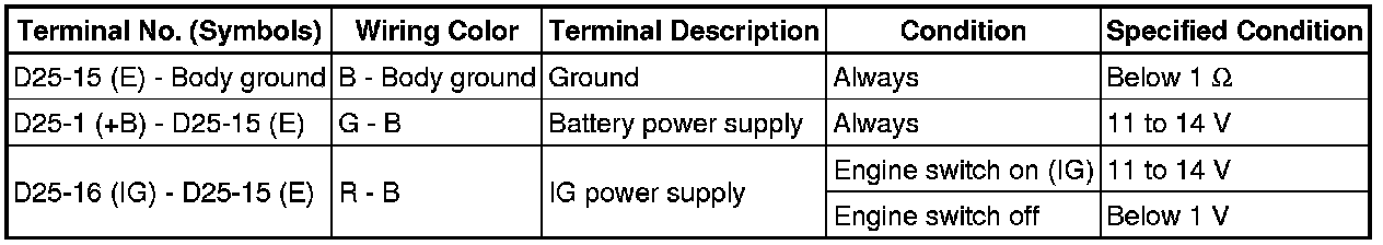 (d) If the result is not as specified, the main body ECU (driver side junction block assembly) may have a malfunction.