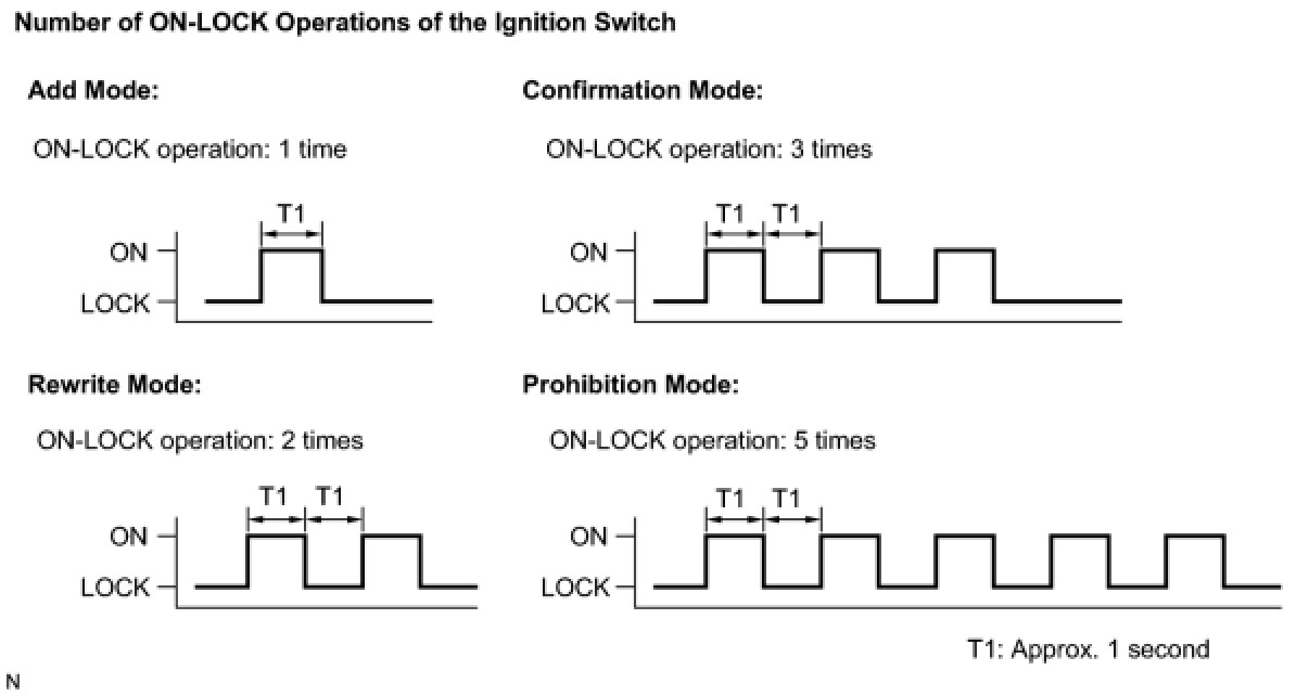 If the number of the ON-LOCK operations of the ignition switch is 0, 4, 6 or more, there will be no response to inform which mode has been selected.