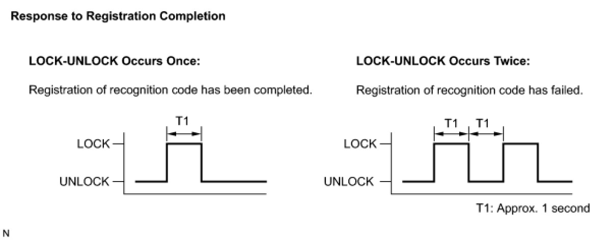 If the LOCK-UNLOCK operation is performed twice, registration of the recognition code has failed. Perform the registration procedure from the beginning. (Procedure "B")